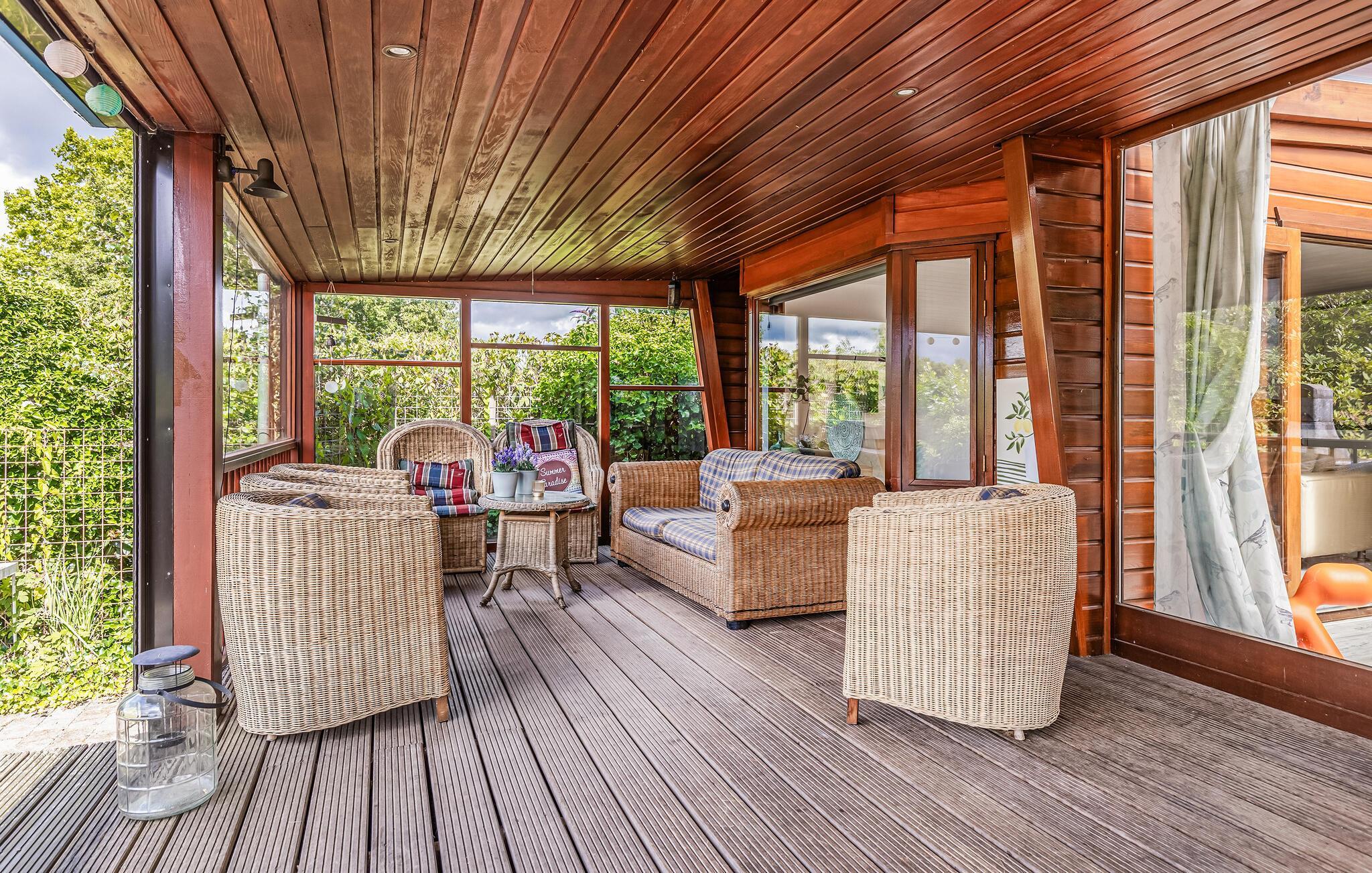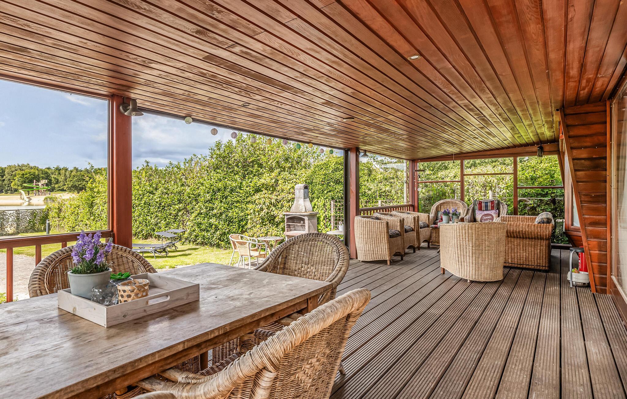 Huset råder over en stor, overdækket terrasse, hvor I kan hygge jer sammen både om sommeren og vinteren. Begynd dagene med en lækker morgenmad udenfor, eller brug grillen til hyggelige aftener. Haven er smukt anlagt og tilbyder masser af privatliv takket være hække og træer.