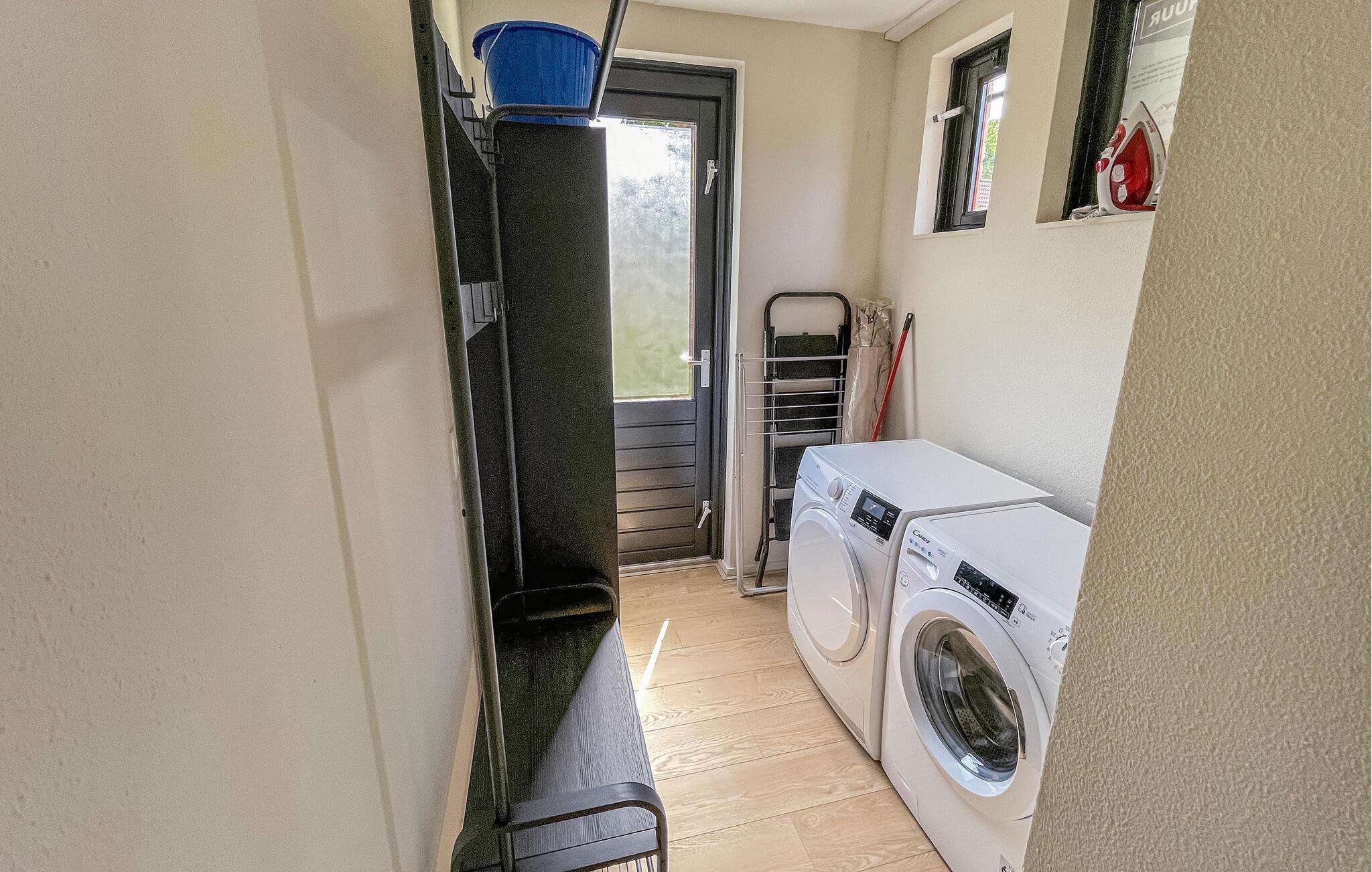 Dette hyggelige feriehus fordeler sig over to etager og har dejligt lyse rum. Husets hjerte er opholdsstuen med store vinduer og en spiseplads, der er forbundet til køkkenet. Glæd jer til hyggelige aftener med familie og venner, og nyd udsigten til haven fra sofaen. Fra stuen er der også adgang til den åbne terrasse, hvor I kan begynde dagen med en lækker morgenmad tilsat udsigten over landskabet og svømningssøen.