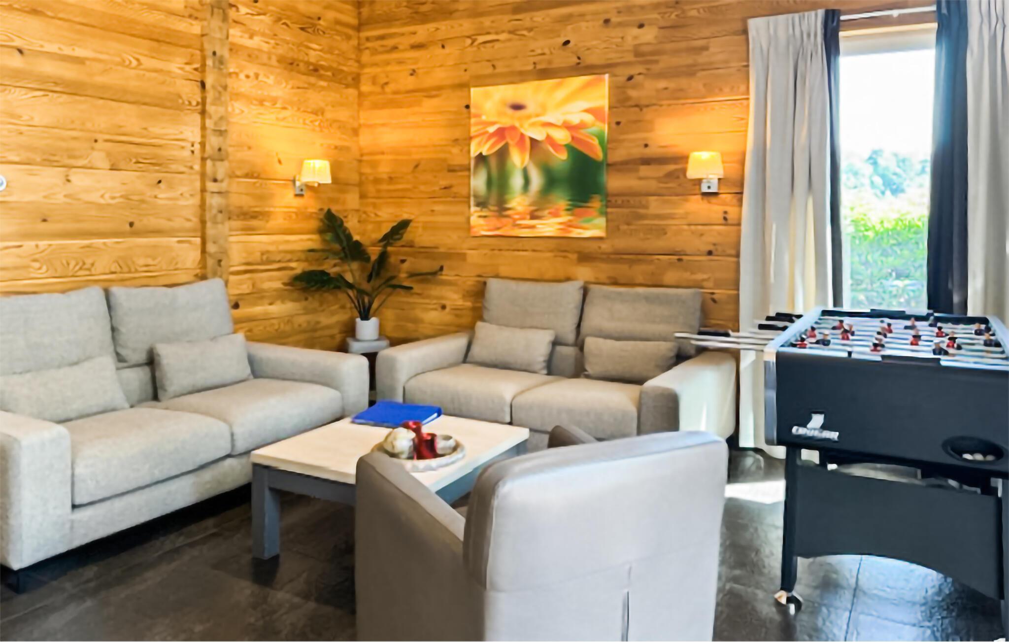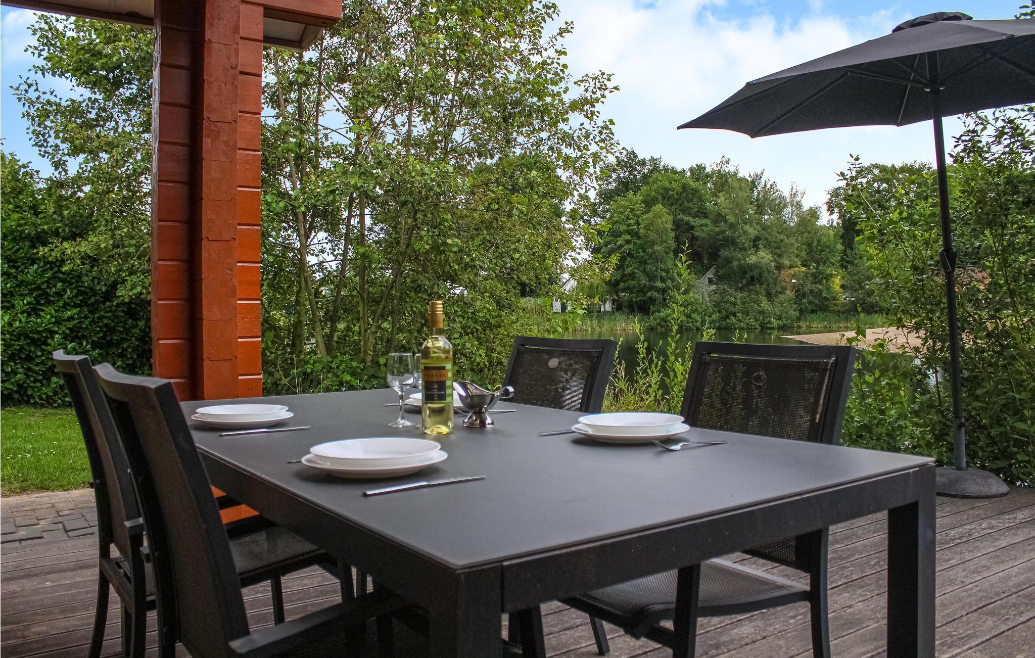 Denne ferievilla er ideel til 6 personer. Den naturligt beliggende, fredelige park i det centrale Limburg tilbyder en afslappende atmosfære. Feriehuset er lavet af træ og har en dejlig terrasse med udsigt over vandet og stranden. Nyd smukke sommeraftener på terrassen. Køkkenet er fuldt udstyret. jeres kæledyr er også velkomne i dette feriehus. Stuen, køkkenet, 2 soveværelser og et badeværelse ligger i stueetagen. Det 3. soveværelse og et separat toilet ligger på første sal. Det rummelige badeværelse lægger op til at slappe af.