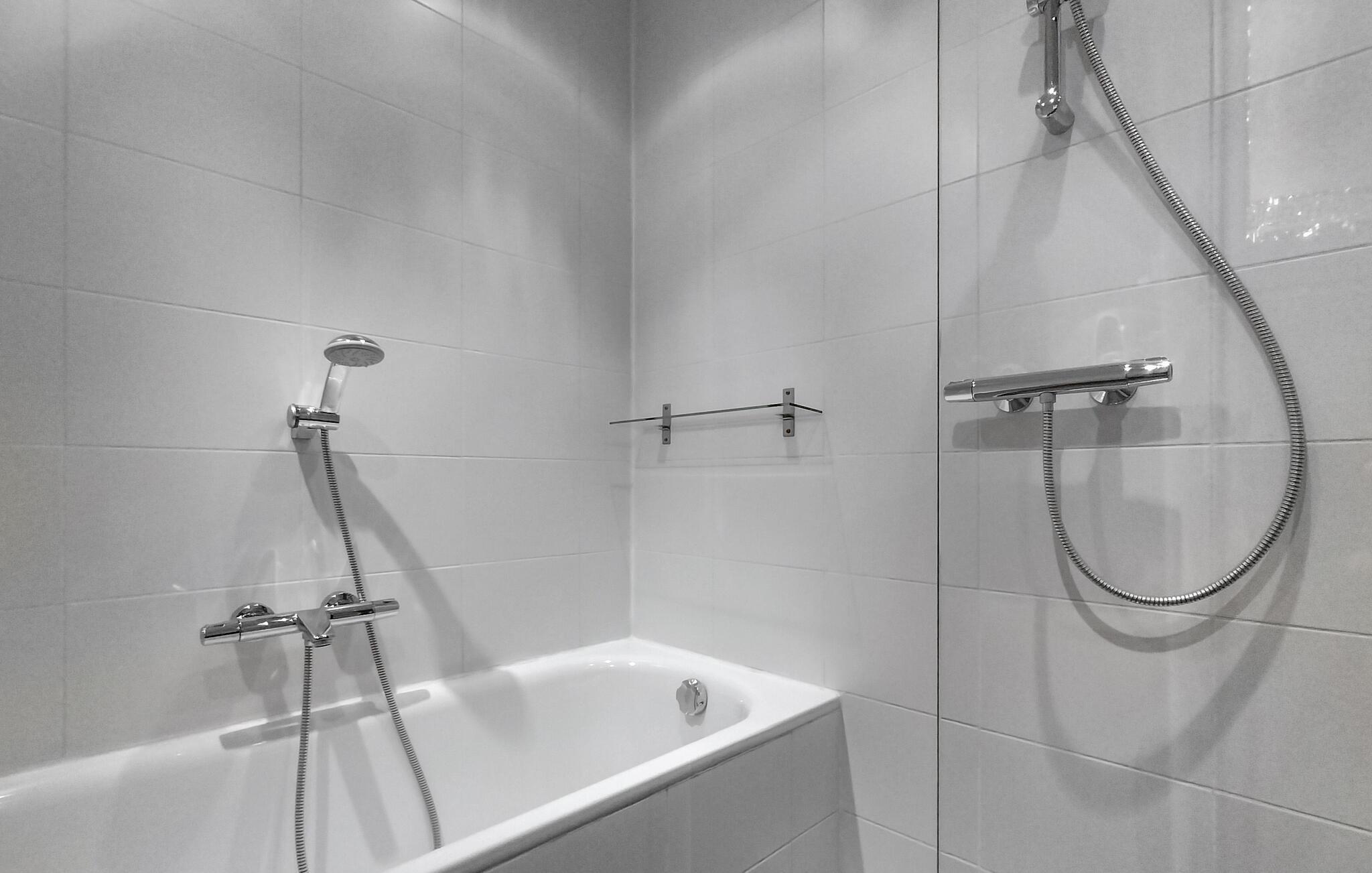 Badeværelse (nr. 1) - Varmt og koldt vand. Håndbruser, badekar og bruser