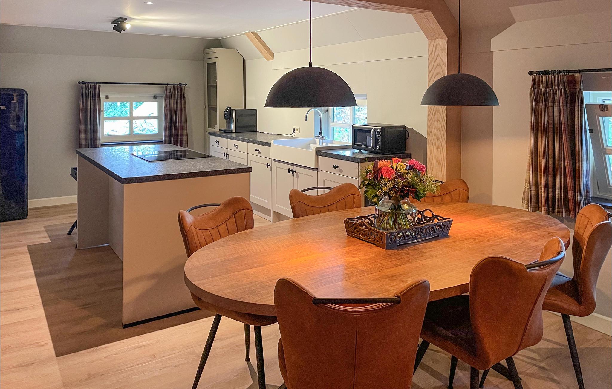 Velkommen til dette smukke hus, der ikke lader noget tilbage at ønske. Wellness og afslapning er meget vigtigt her og lægger op til at tilbringe mange afslappende timer i komfort og hygge. Nyd de landlige værelser, der sammen med brændeovnen emmer af velvære og hyggelig atmosfære. Læs en bog i lænestolene foran pejsen eller tryll lækre retter frem på køkkenøen. I kan bruge jeres daglige wellness-timer i saunaen, spabadet eller dobbeltbruseren og forkæle jer selv med en pause i det rummelige wellness-rum. Haven med en overdækket terrasse inviterer også til at blive hængende. Tag en dukkert i det finske træbad, solbad eller tag en aftengrill på solterrassen. Vandretur i den omkringliggende natur, tag på en dejlig cykeltur eller kast fiskestangen. Provinsen Overijssel kaldes også Hollands Have. Så glæd jer til ekstremt varieret natur, for eksempel i nationalparken Sallandse Heuvelrug, og besøg en af de mange forlystelsesparker i nærheden med jeres børn, såsom Avonturenpark Hellendoorn eller Attractiepark Slagharen, en børnezoo eller et af de spændende museer. Nyd en uforglemmelig ferie! Bemærk: Træ til spabadet kan købes lokalt hos boligejeren.