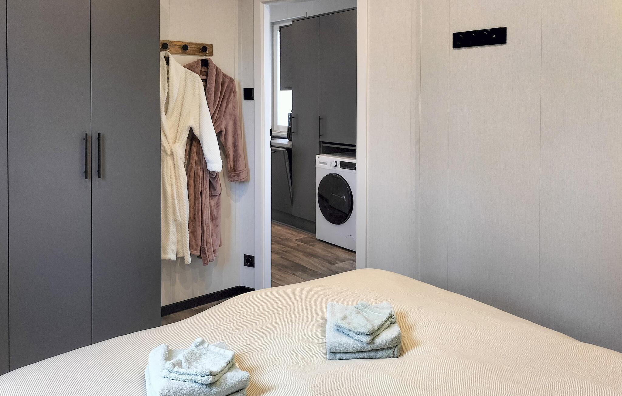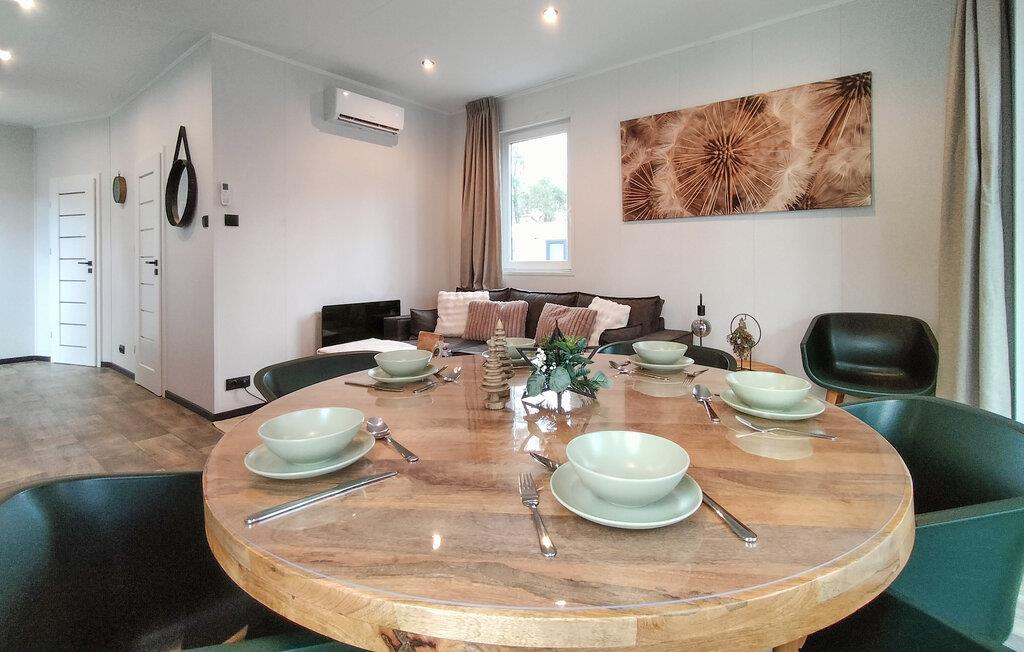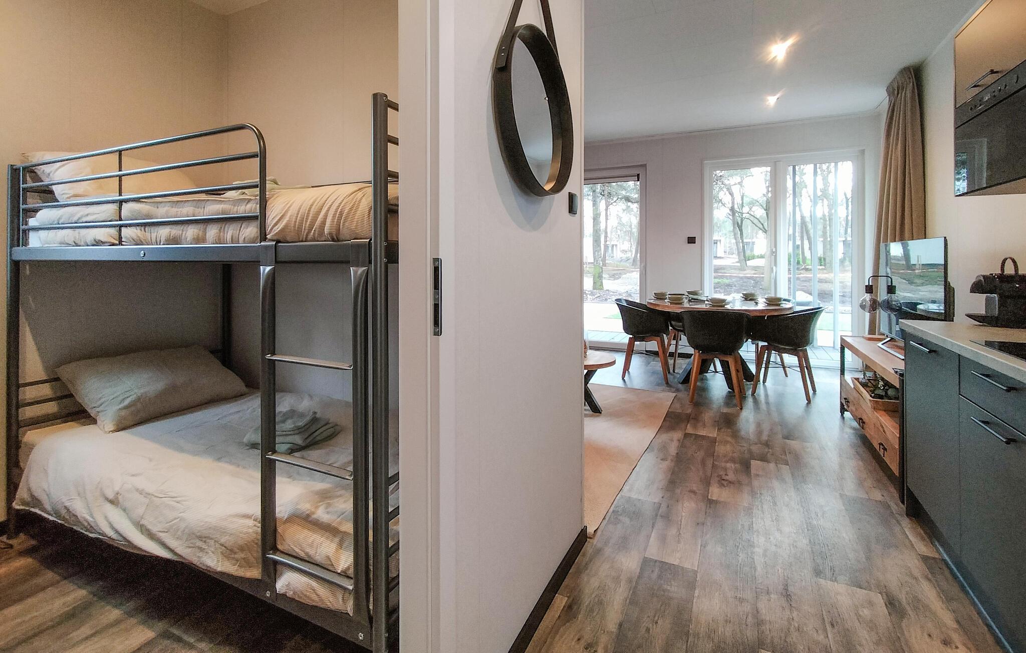 Dette hyggelige feriehus ligger i en lille skov og omgivet af maleriske enge, midt i en charmerende feriepark. Begynd dagene afslappende med en friskbrygget kop kaffe i stuen, nyd udsigten over landskabet og tænk over, hvilke oplevelser jeres feriedag byder på. Efter jeres udflugter kan I vende tilbage til de stilfulde værelser og afslutte aftenen i fred på den komfortable sofa.