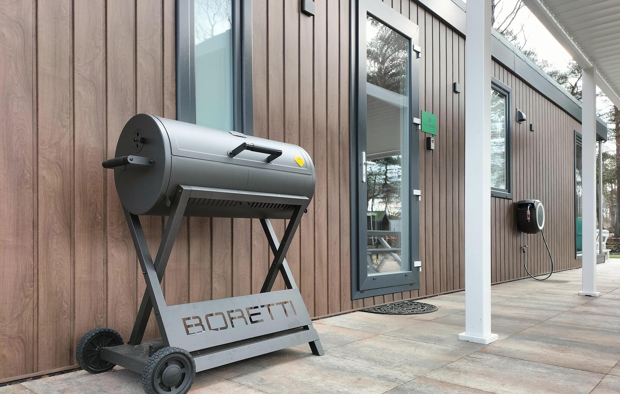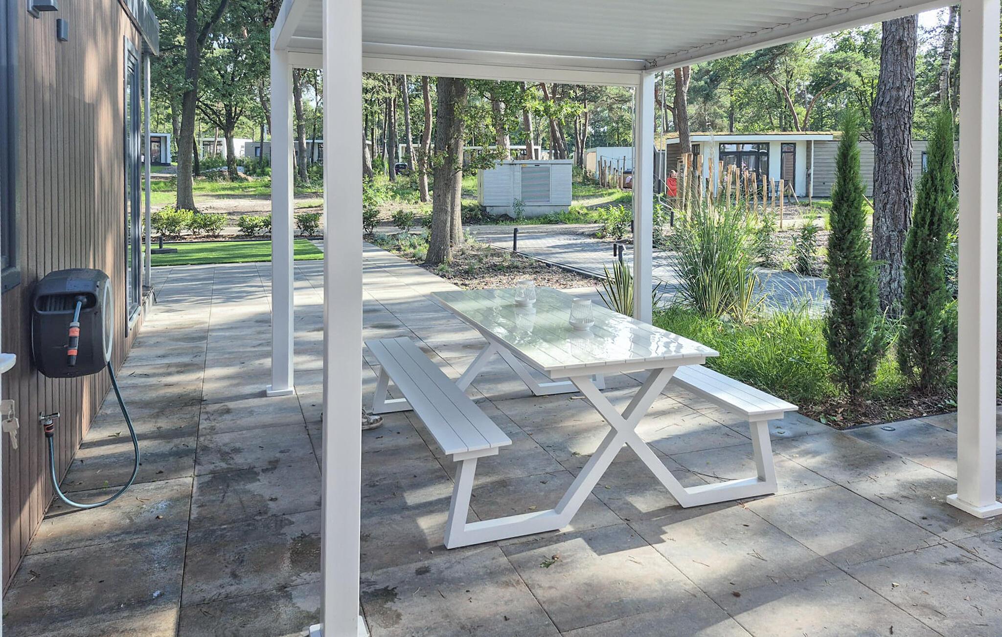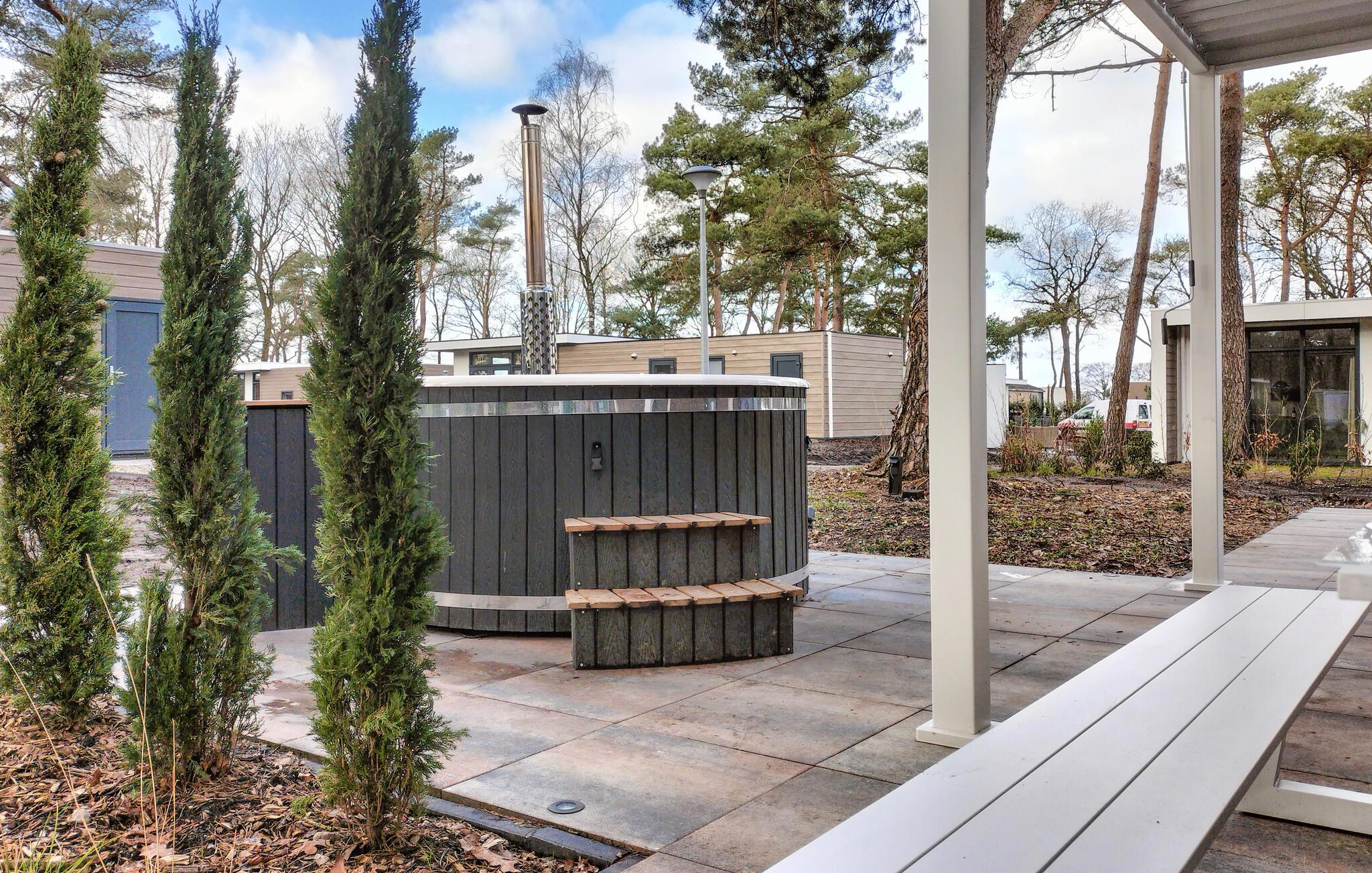 Fra opholdsområdet kan I gå direkte udenfor, hvor I kan bruge både solrige og skyggefulde områder, som I ønsker det. Find jer godt til rette på en liggestol, nyd et beroligende bad i vildmarksbadet eller tilbered en lækker udendørs-middag på grillen.