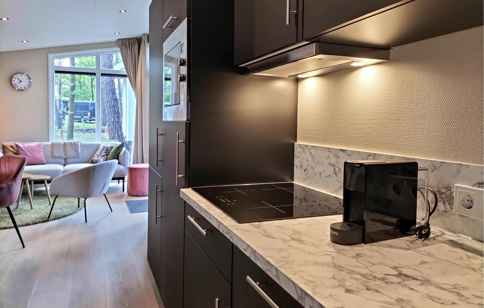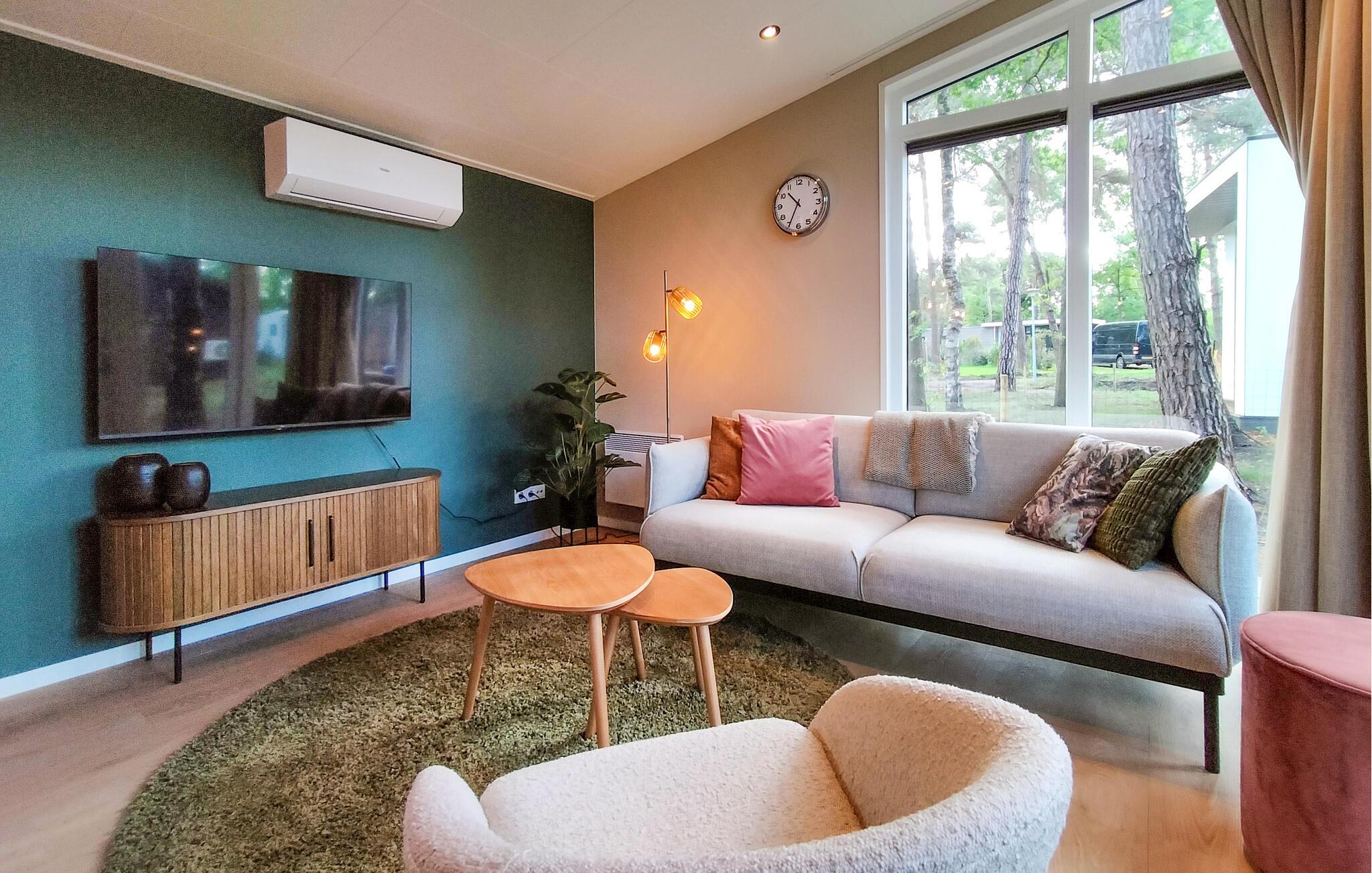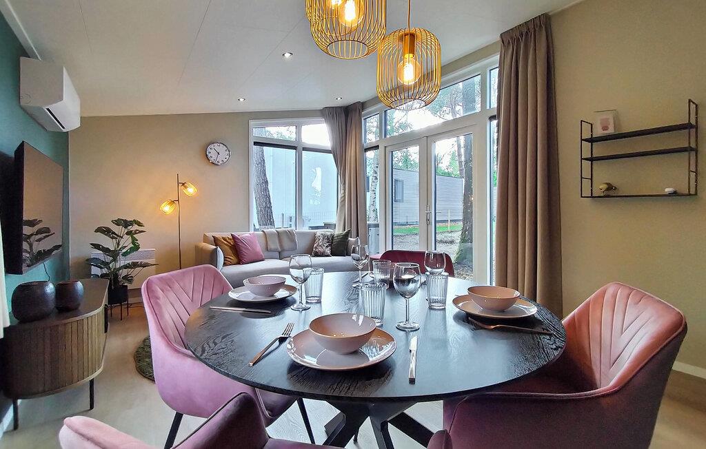 Jeres feriehus ligger i en lille skov, omgivet af smukke enge, i en feriepark. Vågn op om morgenen med en friskbrygget kop kaffe i stuen, nyd den smukke udsigt, og planlæg jeres kommende ferie. Efter jeres aktiviteter kan I vende tilbage til de smagfuldt indrettede værelser og tilbringe hyggelige aftener i den indbydende sofa.