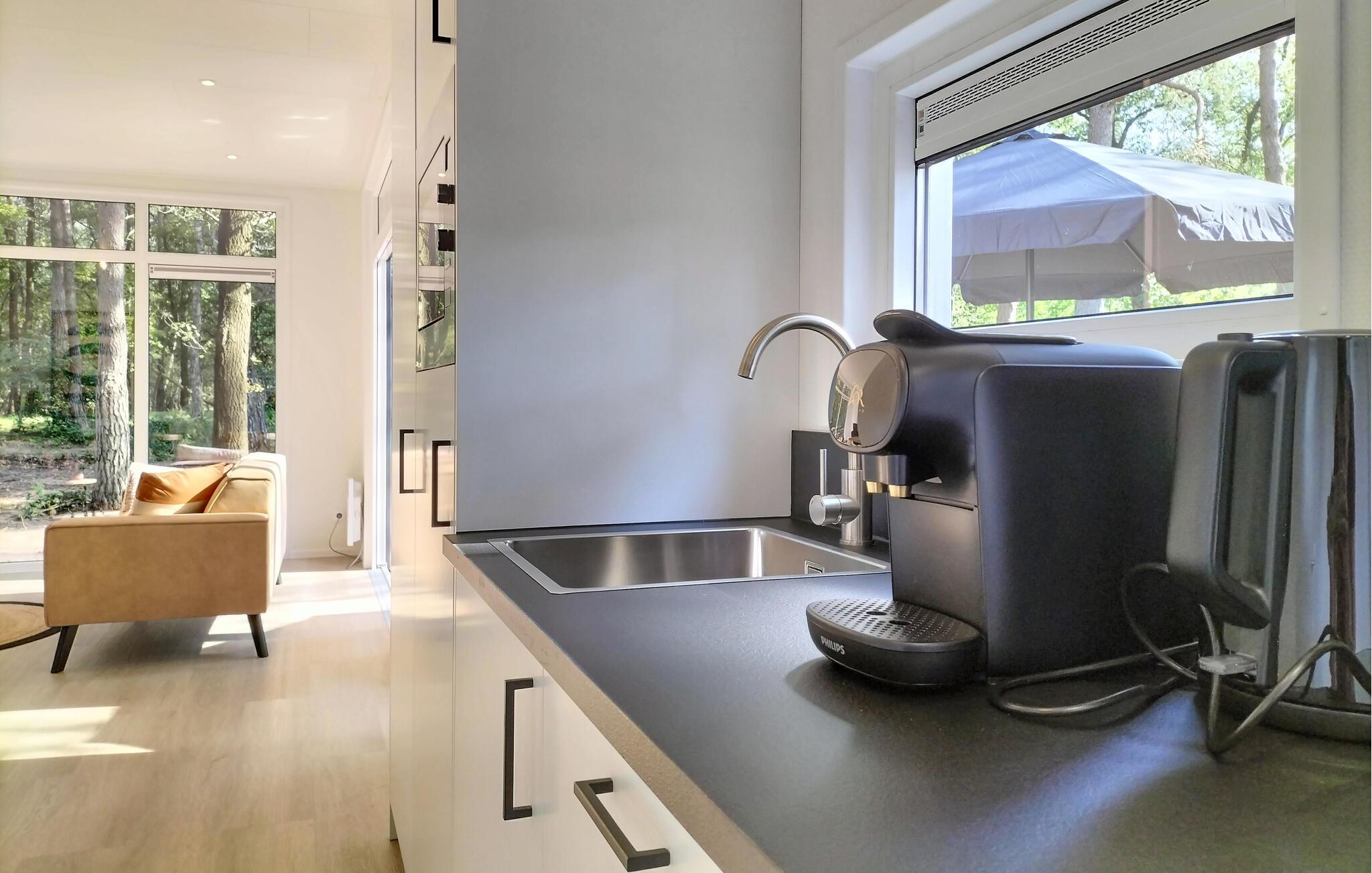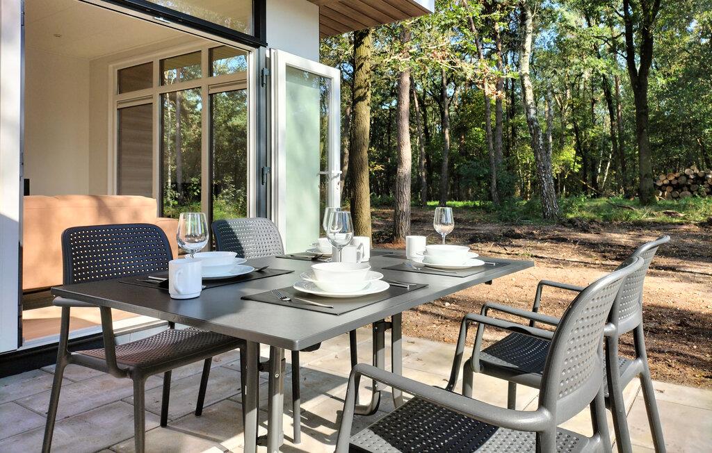 Dit feriehus ligger i en lille skov, omgivet af smukke enge, i en feriepark. Denne ligger i udkanten af ??nationalparken Sallandse Heuvelrug og tæt på forlystelsesparken Avonturenpark Hellendoorn. I umiddelbar nærhed finder I skønne cykelstier og stier, hvor I kan gå en tur og nyde de idylliske omgivelser. Om morgenen kan I føle jer godt tilpas i jeres feriehus med en friskbrygget kop kaffe i stuen, nyde den smukke udsigt til det fri og planlægge dagen frem. Efter jeres aktiviteter kan I vende tilbage til de smagfuldt indrettede værelser og tilbringe hyggelige aftener i den indbydende sofa.