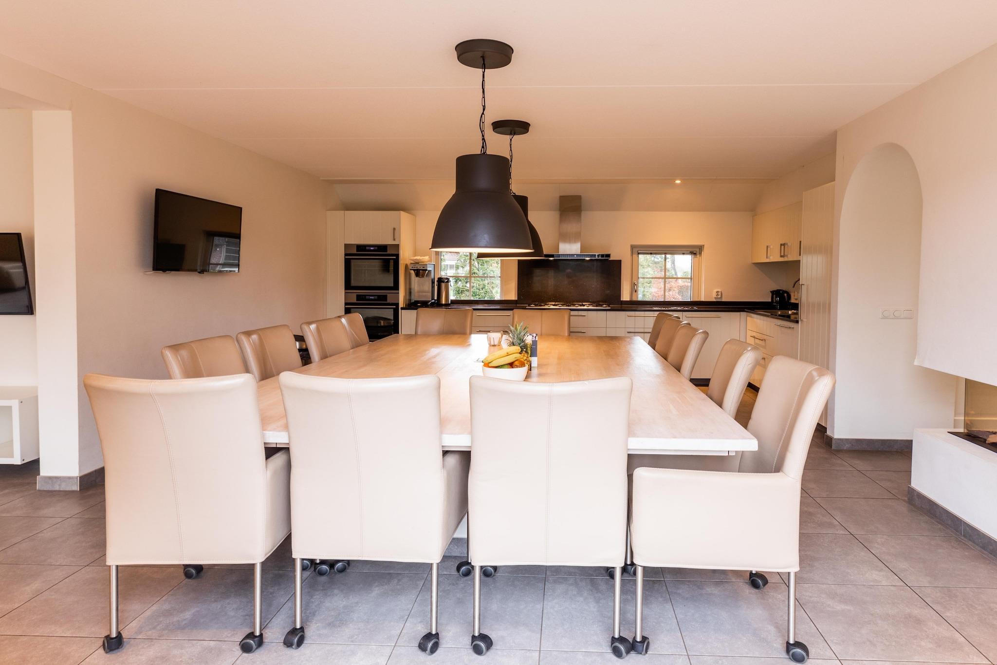 Velkommen til din fredfyldte flugt i hjertet af Overijssel! Denne smukt udformede villa, bygget i twente-saksisk stil, blander traditionel charme med luksuriøs komfort. Med plads til op til 14 gæster har den 7 hyggelige soveværelser, flere moderne badeværelser (to med afslappende boblebade) og et fuldt udstyret køkken, der er ideelt til familiefester. Slap af ved gaspejsen eller nyd den fredelige udsigt over haven fra den overdækkede terrasse - din private oase venter. Beliggende i den rolige Hof van Salland feriepark, tilbyder denne villa direkte adgang til naturstier, skove og åbne grønne områder perfekt til udendørs eventyr. Kæledyr er mere end velkomne her - tag dine lodne venner med på en gåtur gennem Sallandse Heuvelrug Nationalpark, eller besøg den nærliggende hundevenlige Sprengenberg ejendom. Den ekspansive have er ideel til en omgang apport eller blot at slappe af i solen sammen. Efter en dag med at udforske Hellendoorns charmerende omgivelser kan du forkæle dig selv med et måltid på det nærliggende fine spisested 'De Hazelaer' eller nyde rustikke hollandske retter på 'De Budde' med kæledyrsvenlige terrasser. Uanset om du rejser med familie, venner eller kæledyr, tilbyder denne villa det ultimative inden for afslapning, bekvemmelighed og charme på landet. Kom og oplev hollandsk gæstfrihed, når det er bedst - book dit mindeværdige gruppeophold i dag!