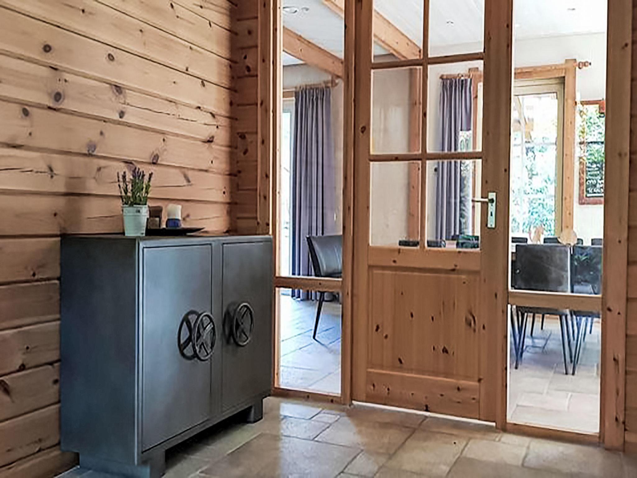 "De Bosuil", 6-room house. Wooden furniture furnishings: entrance hall. Living room with TV. Exit to the garden. 1 room with 1 x 2 bunk beds, separate WC and shower. Kitchen (dishwasher, 4 induction hot plates, toaster, kettle, freezer, electric coffee machine, cooking island, combination microwave) with dining table. Heating. Upper floor: with sloping ceilings, 1 room with 2 beds. 2 rooms, each room with 4 beds. Mezzanine with 2 beds. Bath/shower/WC, Sauna. Terrace. Terrace furniture. Facilities: Internet (WiFi, free). Parking (4 cars) at the house. Please note: non-smokers only. The hot tub is located in the garden. Bookings accepted for holiday purposes only.