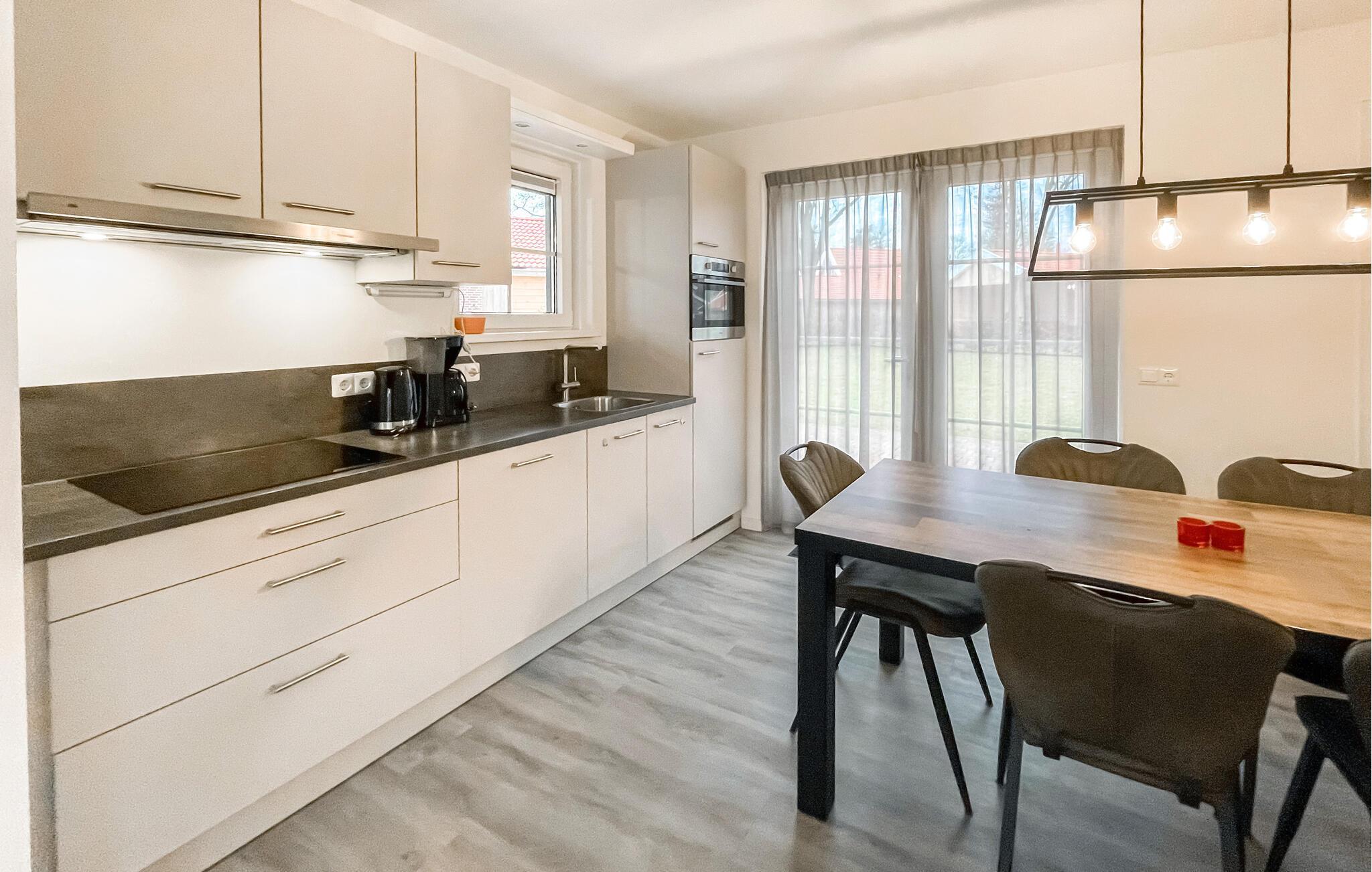 Dette moderne feriehus ligger med en lys, behagelig atmosfære og stilfuld indretning. Pisk lækre retter sammen med lokale produkter i det åbne køkken og tag plads ved det indbydende spisebord. Forkæl jer selv med hyggelige stunder i saunaen og find jer godt til rette på det komfortable sofaområde om aftenen til gode samtaler eller en spilleaften.