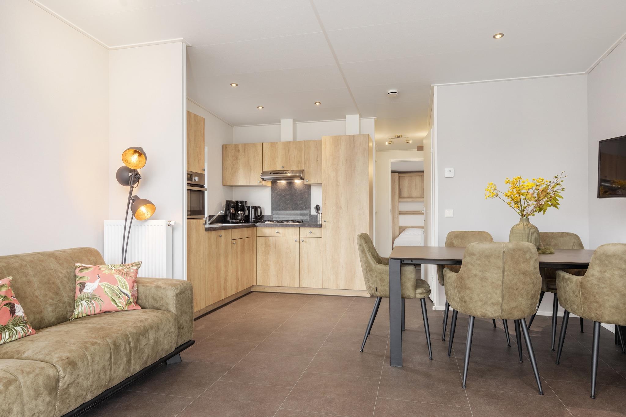 Stilfuld hytte med komfort og charme Beliggende i den fredelige Recreatiepark De Tolplas tilbyder denne fritliggende hytte i ét plan den perfekte tilflugtssted for familier eller grupper på op til seks personer. Den luftige stue er omhyggeligt designet til afslapning og har et smart-tv og bløde siddepladser, mens det åbne køkken er fuldt udstyret med opvaskemaskine, mikrobølgeovn og kaffemaskine, så du føler dig hjemme. Tre hyggelige soveværelser - inklusive en sjov køjeseng til børn - sikrer afslappende nætter, og airconditionen holder tingene kølige selv på varme sommerdage. Kæledyrsvenlig lykke i naturen Dine firbenede ledsagere er lige så velkomne som dig! Den nærliggende sø og frodige vandrestier tilbyder naturskønne stier, som hunde kan udforske, med steder til sjov uden snor. Naturreservatet Wierdense Veld ligger kun en kort køretur væk og tilbyder kæledyrsvenlige ruter gennem lyngmarker og skove. Efter en lang gåtur kan du slappe af på hyttens overdækkede terrasse, mens dit kæledyr slapper af i haven. Her er naturen for alle - inklusive haler! Udforsk Hoge Hexel og lokale lækkerier Fra onsdag den 14. januar til tirsdag den 3. februar 2026 vil restaurant De Tolplas være lukket. Lodgen, der ligger kun 12 km fra Almelo, er en god base for at opdage charmerende landsbyer, cykle gennem grønne landskaber eller spise på hyggelige bistroer. Selvom parkens restaurant midlertidigt er lukket, finder du masser af kæledyrsvenlige spisesteder i nærheden – spørg efter anbefalinger i velkomstmappen. Uanset om du søger afslapning eller udendørs eventyr, leverer denne lodge en indbydende og mindeværdig oplevelse på det hollandske landskab.