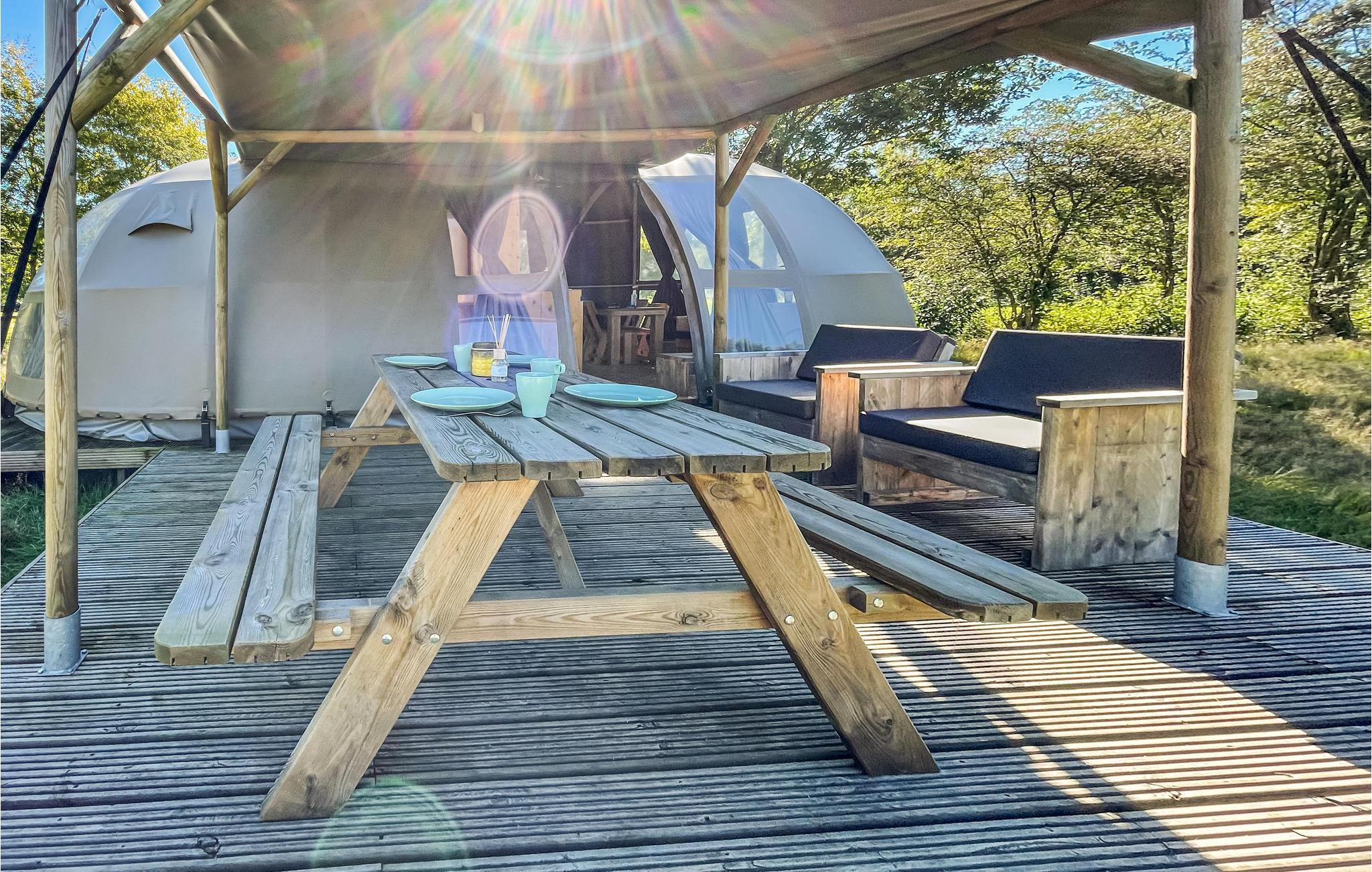 Luksusteltet er en del af et campingområde, som byder på flere faciliteter, ikke mindst hvis I kan lide heste. Der er også mulighed for at alt fra at spille bordtennis til at leje cykler og begive sig ud i de grønne omgivelser. Rundt om pladsen er der et stort netværk af vandrestier og mountainbikeruter, så I har alle gode forudsætninger for at komme ud og fylde lungerne med den friske luft.