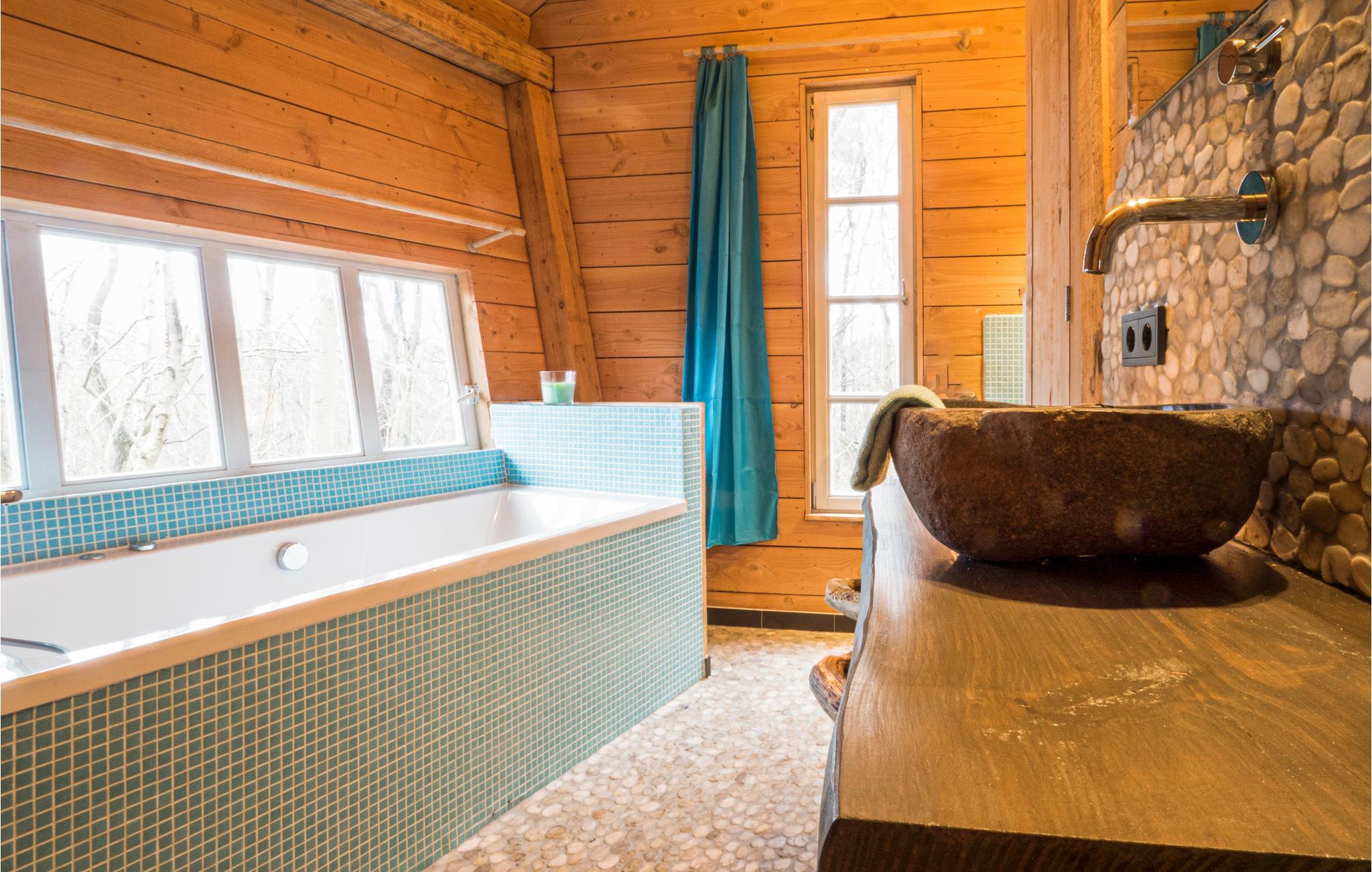Der er lagt op til nogle fantastiske feriedage i Hoogersmildes smukke natur, hvor I kan flytte ind i denne træhytte. Her kan I se frem til smagfulde løsninger og alt det udstyr, I får brug for. Giv jer god tid til madlavningen, tag et bad med udsigt til landskabet eller sæt en god film på, når I trænger til at slappe af. Den åbne planløsning giver jer gode rammer til at samles og nyde hinanden selskab.