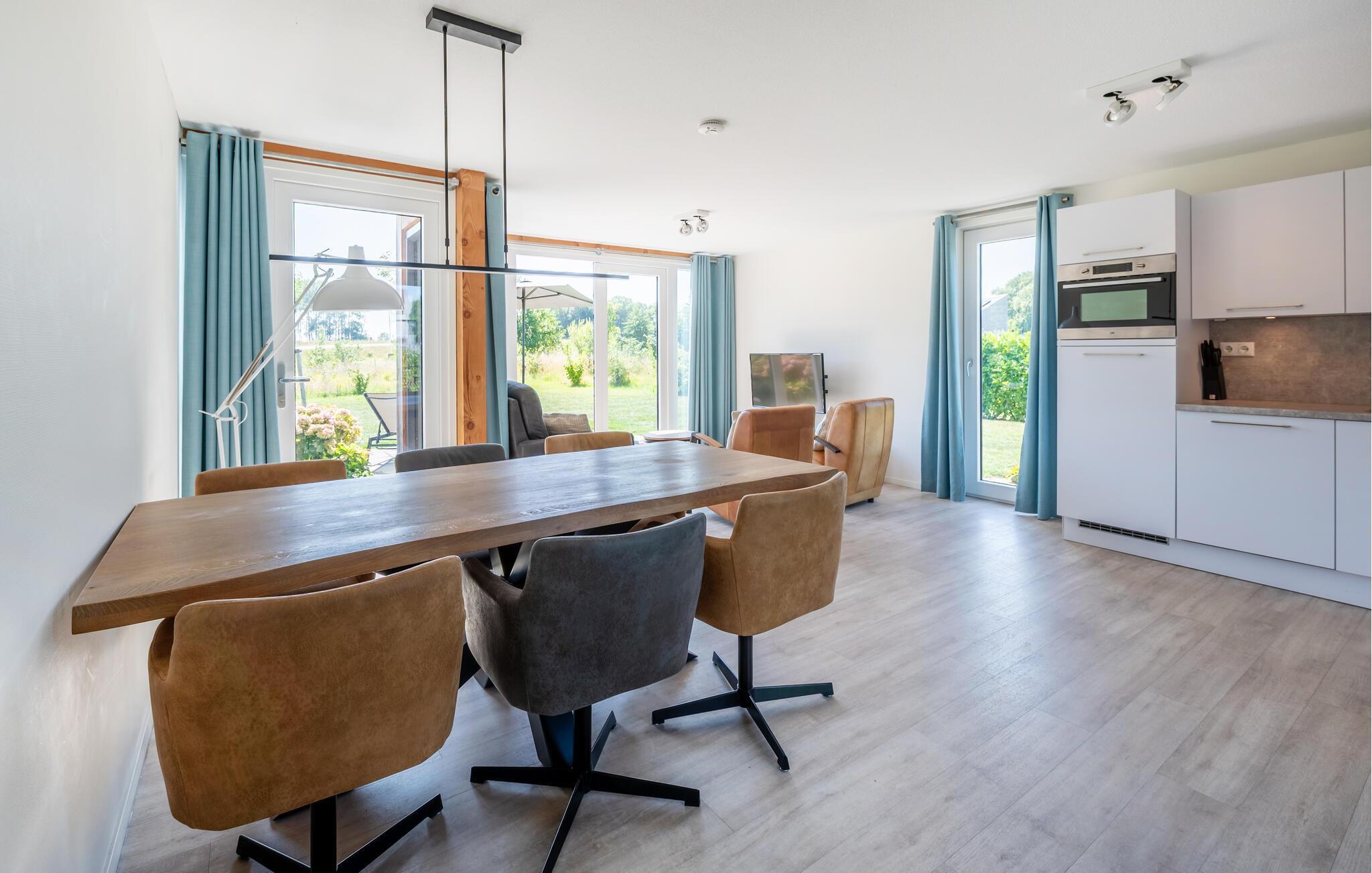 Denne moderne og luksuriøse villa, der ligger meget tæt på stranden, giver jer det perfekte sted at slappe af. De stilfulde møbler og den lyse, maritime atmosfære skaber en rolig og indbydende atmosfære. Her har I masser af plads til at nyde tiden med familie eller venner. Saml jer i det åbne opholdsrum, der problemfrit kombinerer køkken, spisestue og opholdsstue og lægger op til at lave mad, spise eller slappe af sammen.
