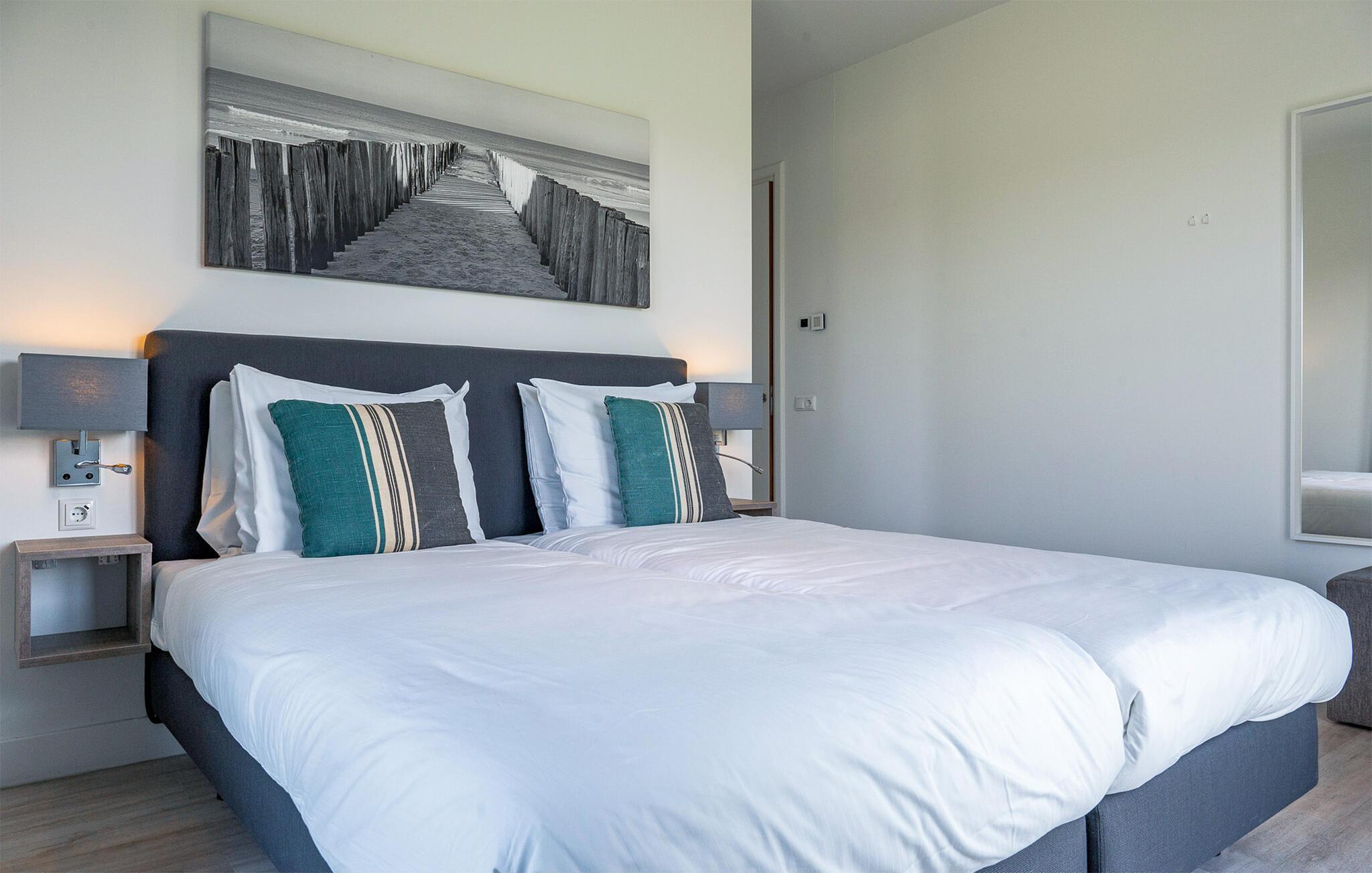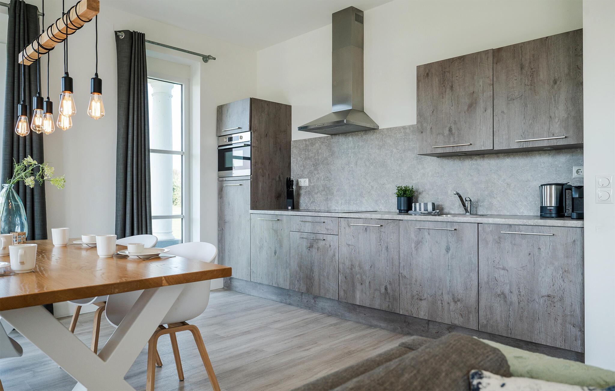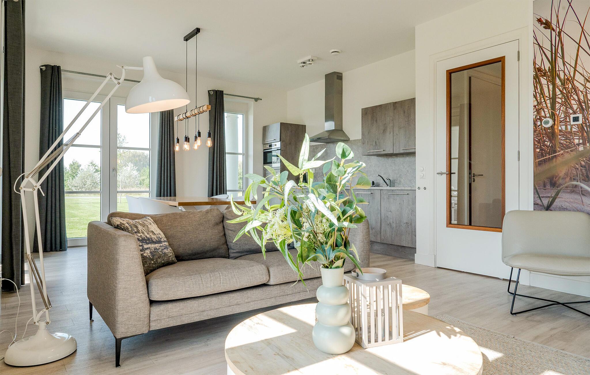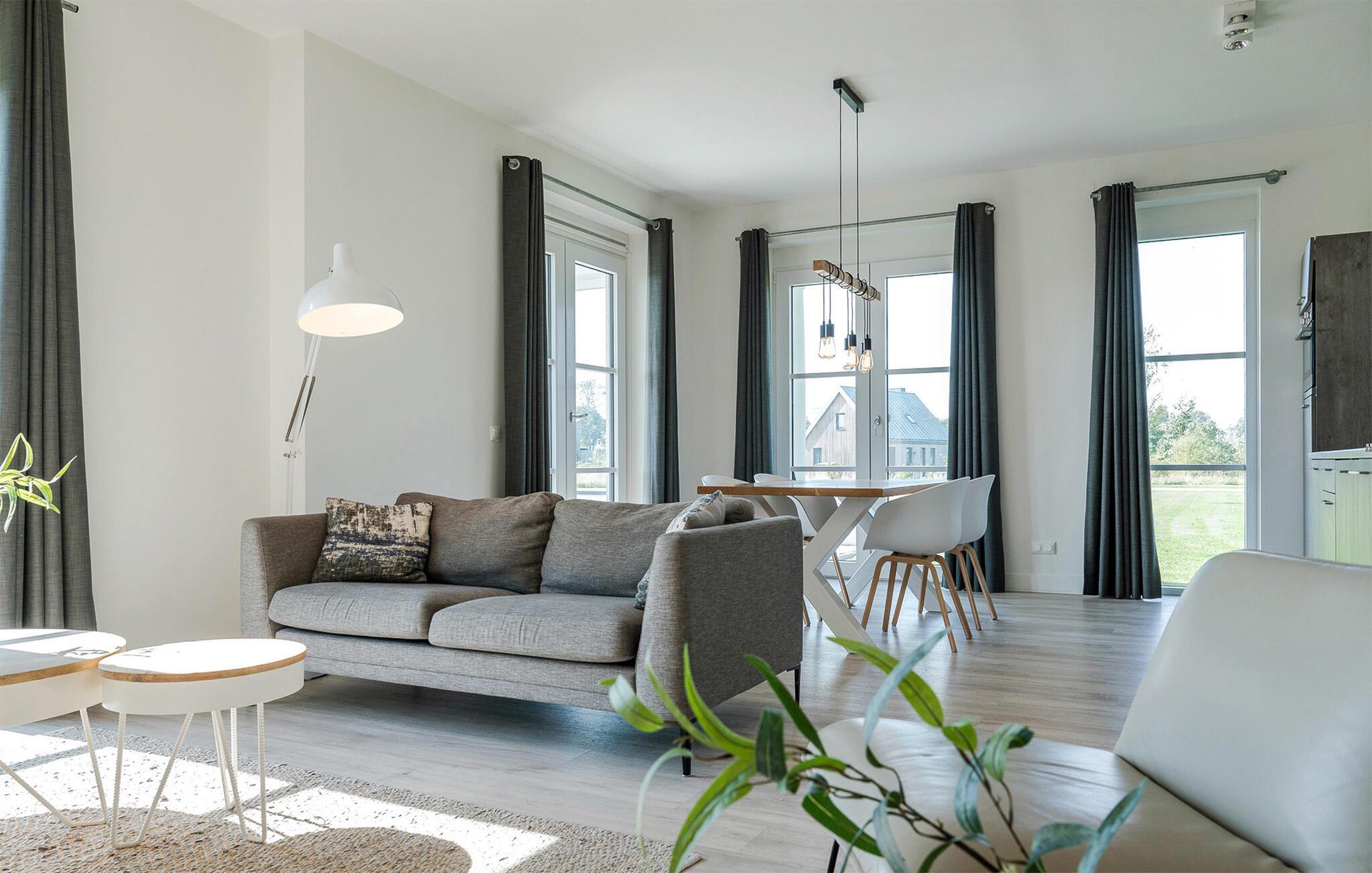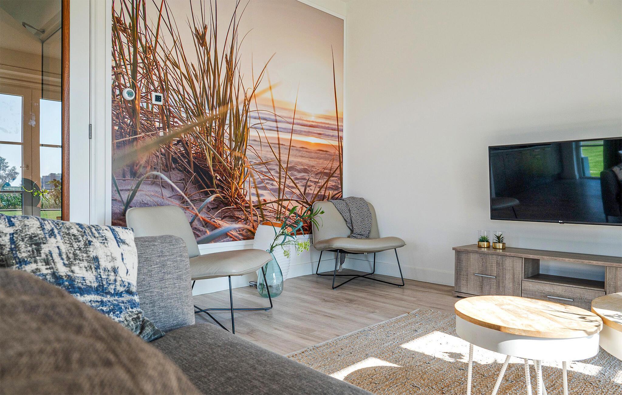 Denne moderne og luksuriøse ferielejlighed i en elegant lejlighedsbygning giver jer det perfekte sted at slappe af. De stilfulde møbler og den lyse, maritime atmosfære skaber en rolig og indbydende atmosfære. Her har I masser af plads til at finde jer godt til rette med familien eller venner. Mød hinanden i det åbne opholdsrum, der succesfuldt kombinerer køkken, spisestue og opholdsstue og lægger op til at lave mad, spise eller slappe af sammen.