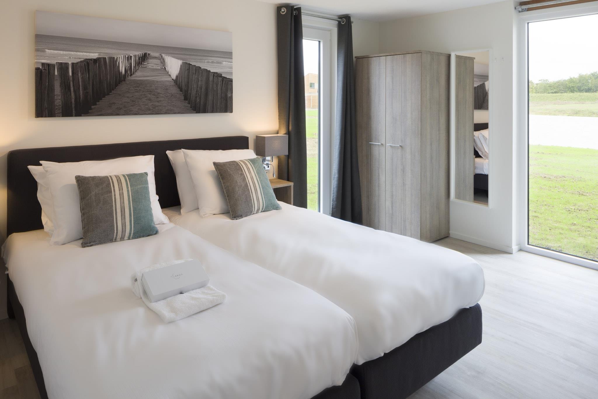 Moderne luksus ved havnefronten Velkommen til dit private tilflugtssted på Camperveer Veerse Meer, et boutique-resort i Kamperland, hvor elegant design møder fredfyldt liv ved vandet. Denne fritliggende villa er omhyggeligt indrettet til både komfort og stil, med en rummelig opholdsstue, Smart TV og et moderne åbent køkken udstyret til alle dine kulinariske behov. Med fire soveværelser - inklusive et i stueetagen med en-suite badeværelse med regnbruser - vil alle i din gruppe nyde privatlivets fred og afslapning. Gulvvarmen tilføjer et hyggeligt touch til helårsophold. Lakeside Leisure & Coastal Air Træd udenfor og slap af på din private terrasse med havemøbler og liggestole, kun få skridt fra vandkanten. Det nyudviklede resort, der åbnede i 2019, tilbyder en fredelig atmosfære, hvor du kan nyde naturen, cykle langs naturskønne diger eller nyde panoramaudsigten over Veere-søen. Uanset om du planlægger en stranddag, sejleventyr eller en spadseretur gennem maleriske Zeelandlandsbyer, tilbyder denne beliggenhed den perfekte base. Spis, udforsk og nyd Kun få minutter væk inviterer Kamperlands kulinariske scene dig til at nyde Zeelands lokale smagsoplevelser. Forkæl dig selv med frisk fisk og skaldyr på Brasserie Blush eller prøv sæsonbestemte retter på Gasterij Rubens. Nyd aftendrinks på din terrasse, og se solnedgangen male søen. Bemærk venligst: kæledyr er ikke tilladt, hvilket sikrer et fredeligt og allergibevidst ophold for alle gæster.