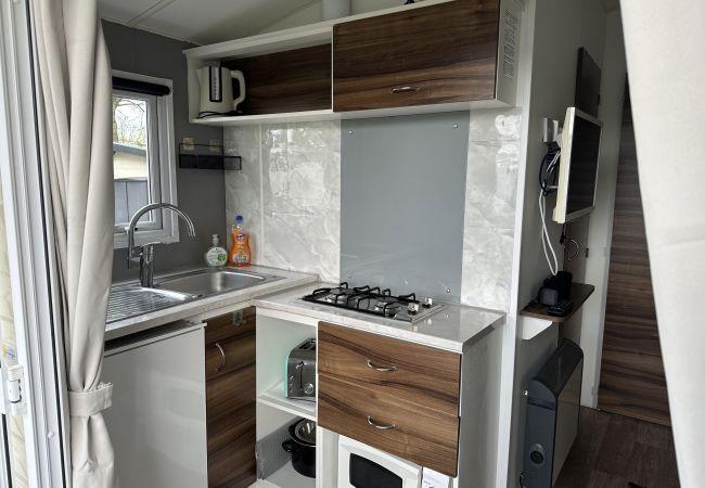 The accommodation features a comfortable layout with two bedrooms - one double bed and one bunk bed - ensuring a good night's sleep for all guests. The single bathroom with a shower provides essential amenities for your stay. The kitchen is fully equipped with modern appliances, including a coffee machine, kitchenware, dishes, and a kettle, allowing you to prepare delicious meals during your holiday.