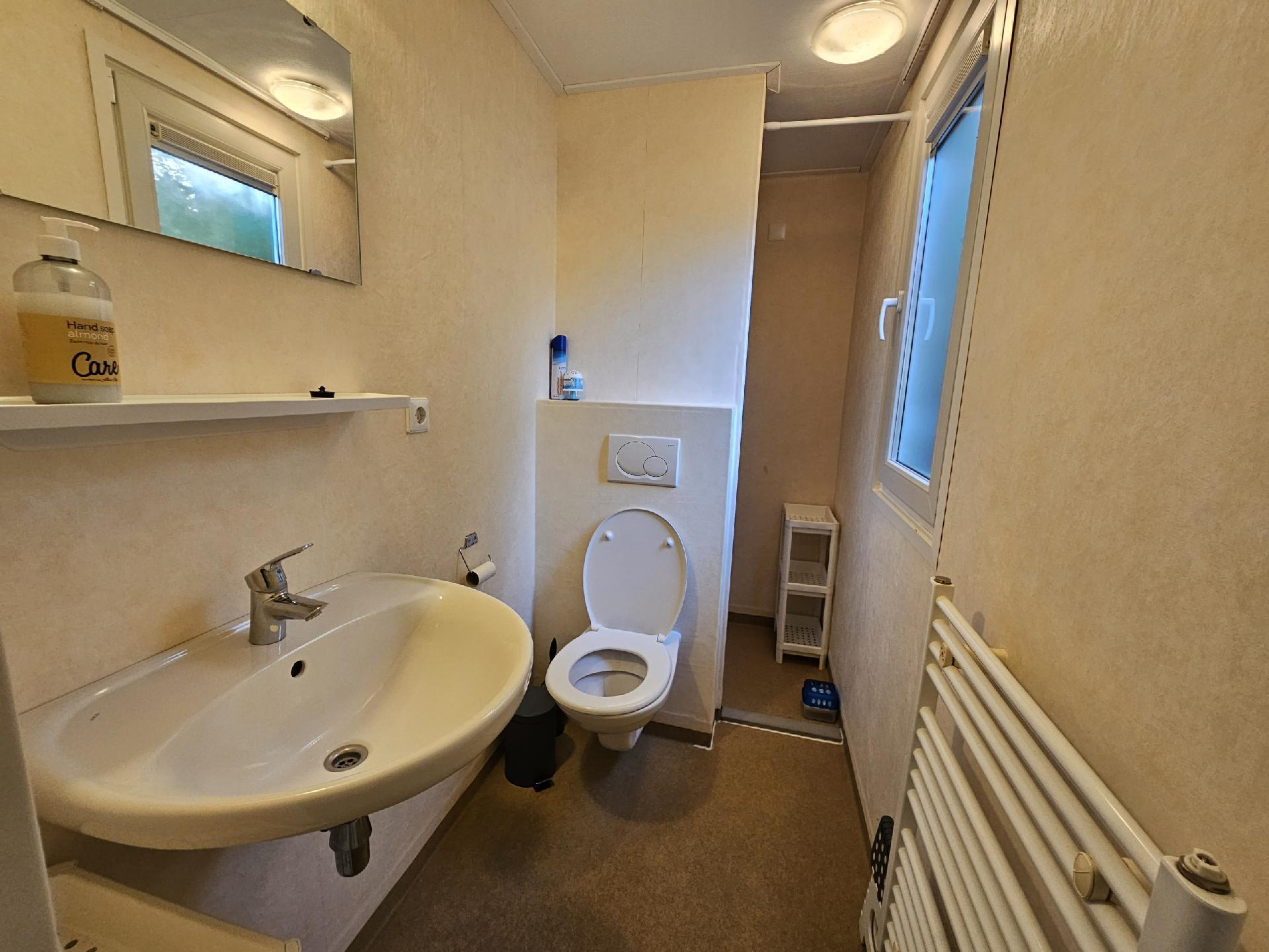 The chalet features two bedrooms, including a comfortable double bed and a practical bunk bed, ensuring a good night's sleep for everyone. The single bathroom with a shower provides all the necessary amenities for a comfortable stay. Central heating keeps the space warm and inviting, while complimentary WiFi ensures you stay connected during your holiday.