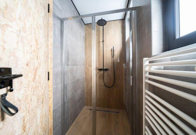 The lodge has 2 bedrooms, each with two single beds. The modern bathroom is equipped with a shower cabin and a stylish bathroom furniture. In addition, there is a separate toilet for extra convenience.