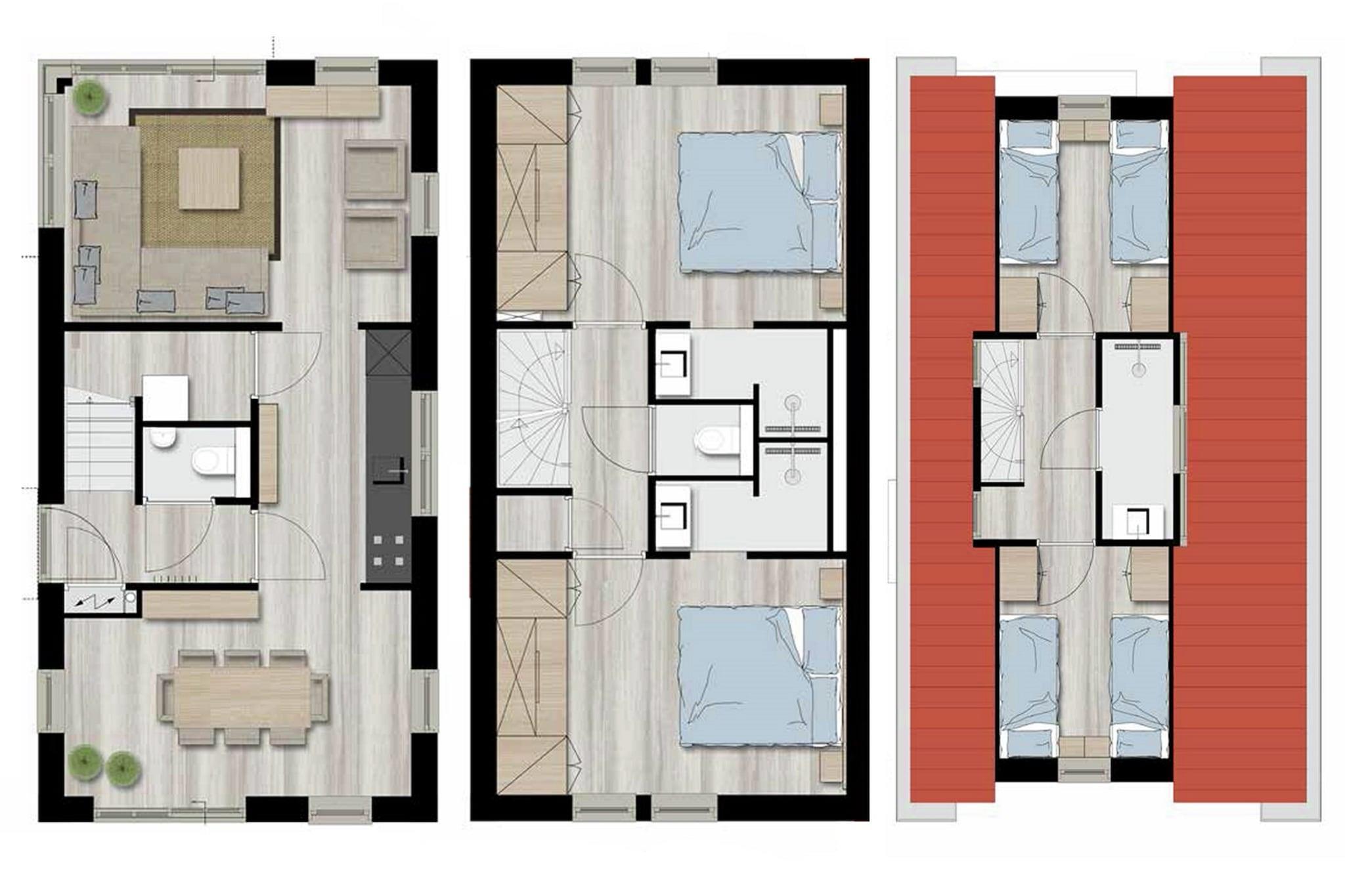 Stueetage: (entre(toilet), Stue(Fjernsyn, hyggepejs, varme(gulvvarme)), åbent køkken(kaffemaskine(kopper), combi-mikroovn, opvaskemaskine , køle-fryseskab)) På 1. etage: (Soveværelse med badeværelse(dobbeltseng eller 2 enkeltsenge Senge, Fjernsyn, bruser, håndvask), Soveværelse med badeværelse(dobbeltseng eller 2 enkeltsenge Senge, bruser, håndvask), Repos(toilet)) På 2. etage: (soveværelse(dobbeltseng eller 2 enkeltsenge Senge), soveværelse(dobbeltseng eller 2 enkeltsenge Senge), badeværelse(bruser, håndvask), Repos) pulterkammer(tørretumbler, vaskemaskine), terrasse, have, havemøbler, parkering