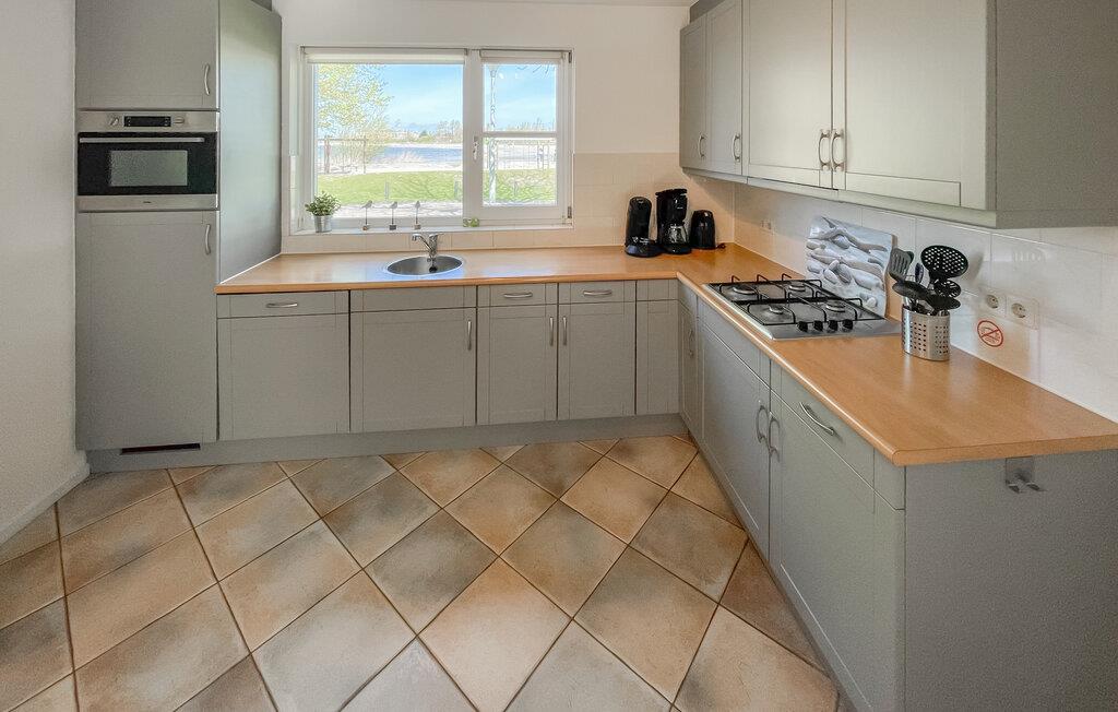 Velkommen til dette skønne hus i Makkum, der ligger lige ned til vandet, og som over to etager byder på de ideelle rammer for en fantastisk familieferie. Husets hjerte er det rummelige køkken-alrum, der er udstyret med komfortable møbler, moderne faciliteter og lækre lysindfald gennem de store vinduespartier. Køkkenet er veludstyret, så tag jer blot god tid til madlavningen, inden I dækker op til den store middag ved det flotte spisebord. Senere kan I rykke over i sofaen med snacks, brætspil og/eller en god film på tv'et, mens I lægger planer for de kommende dage.