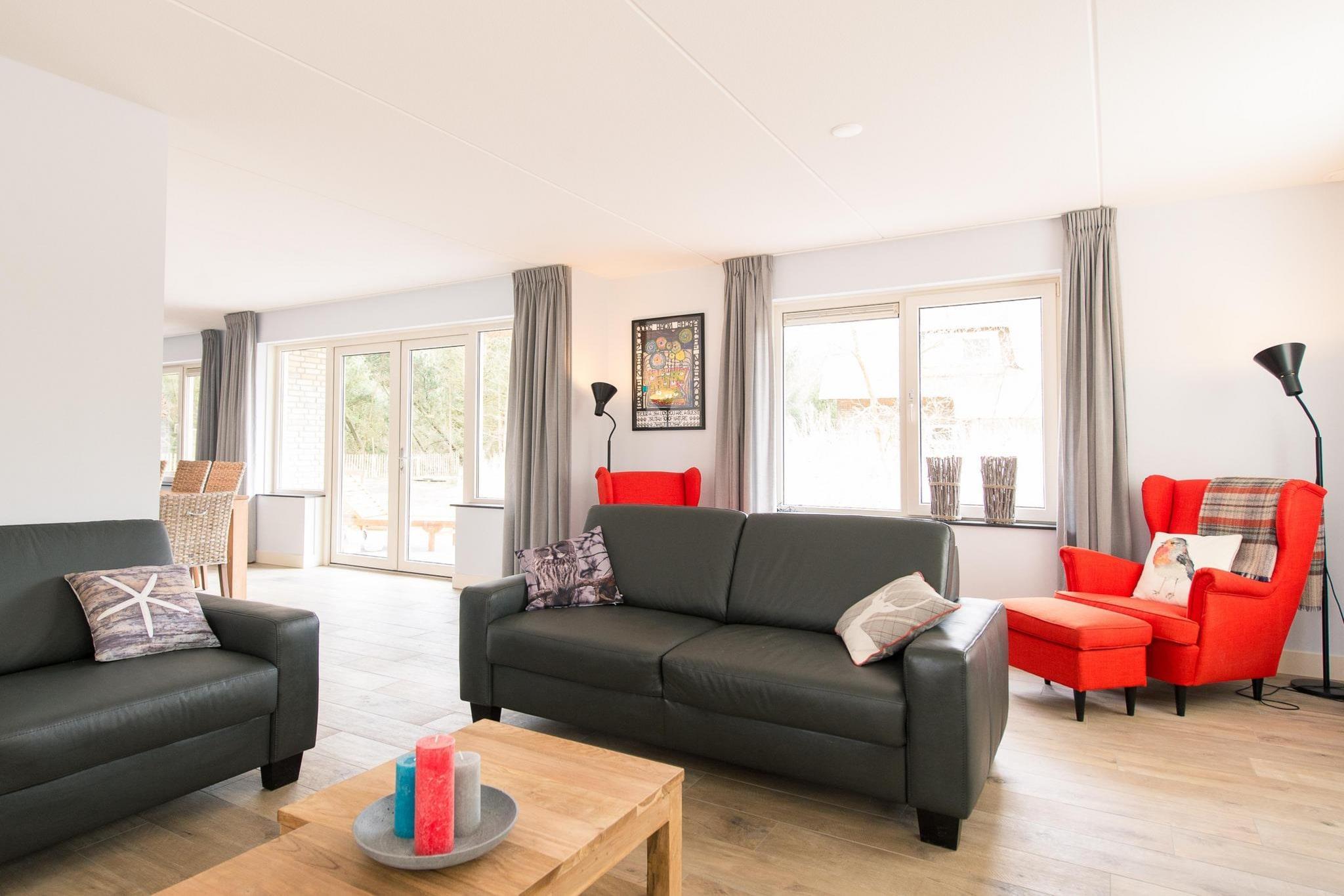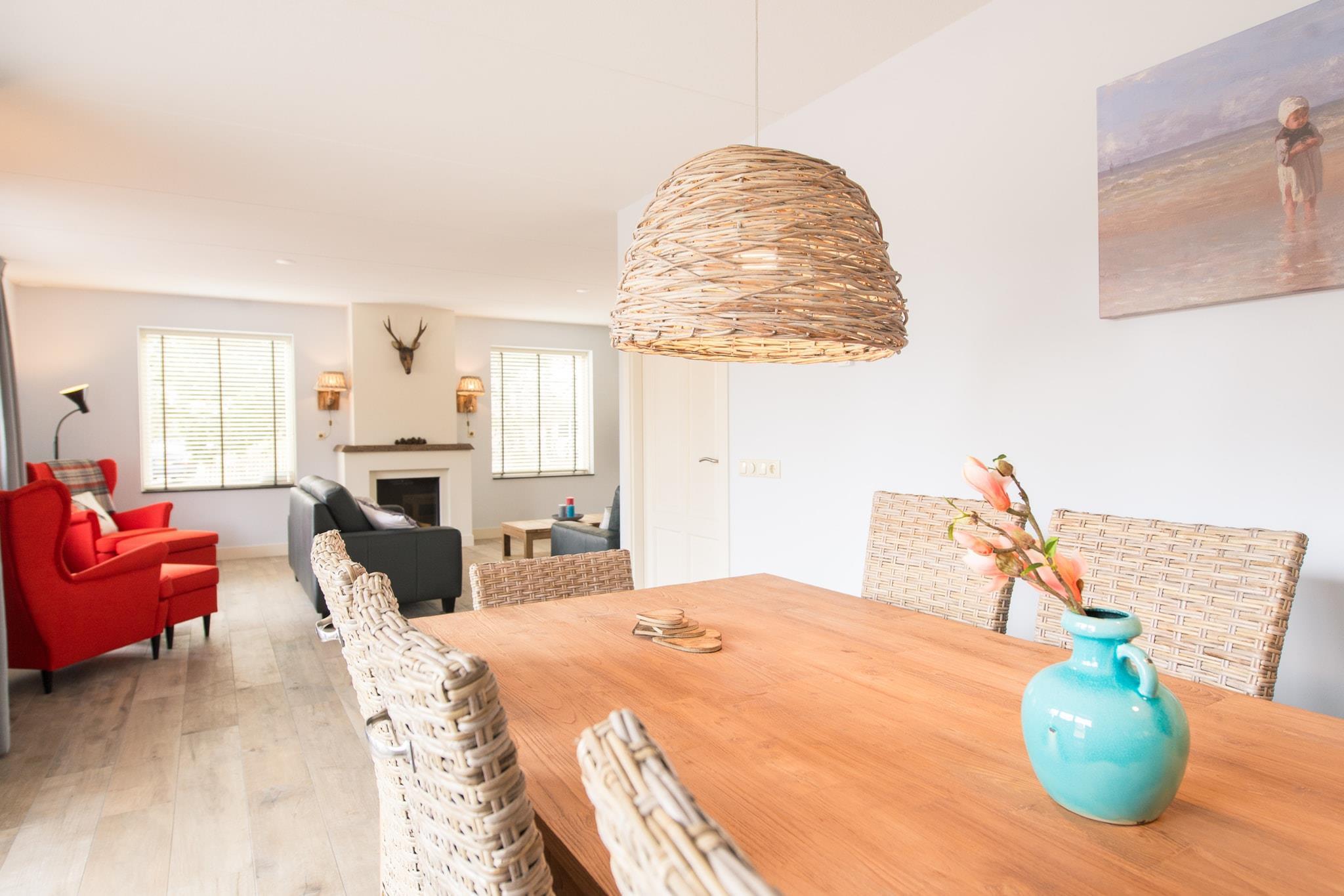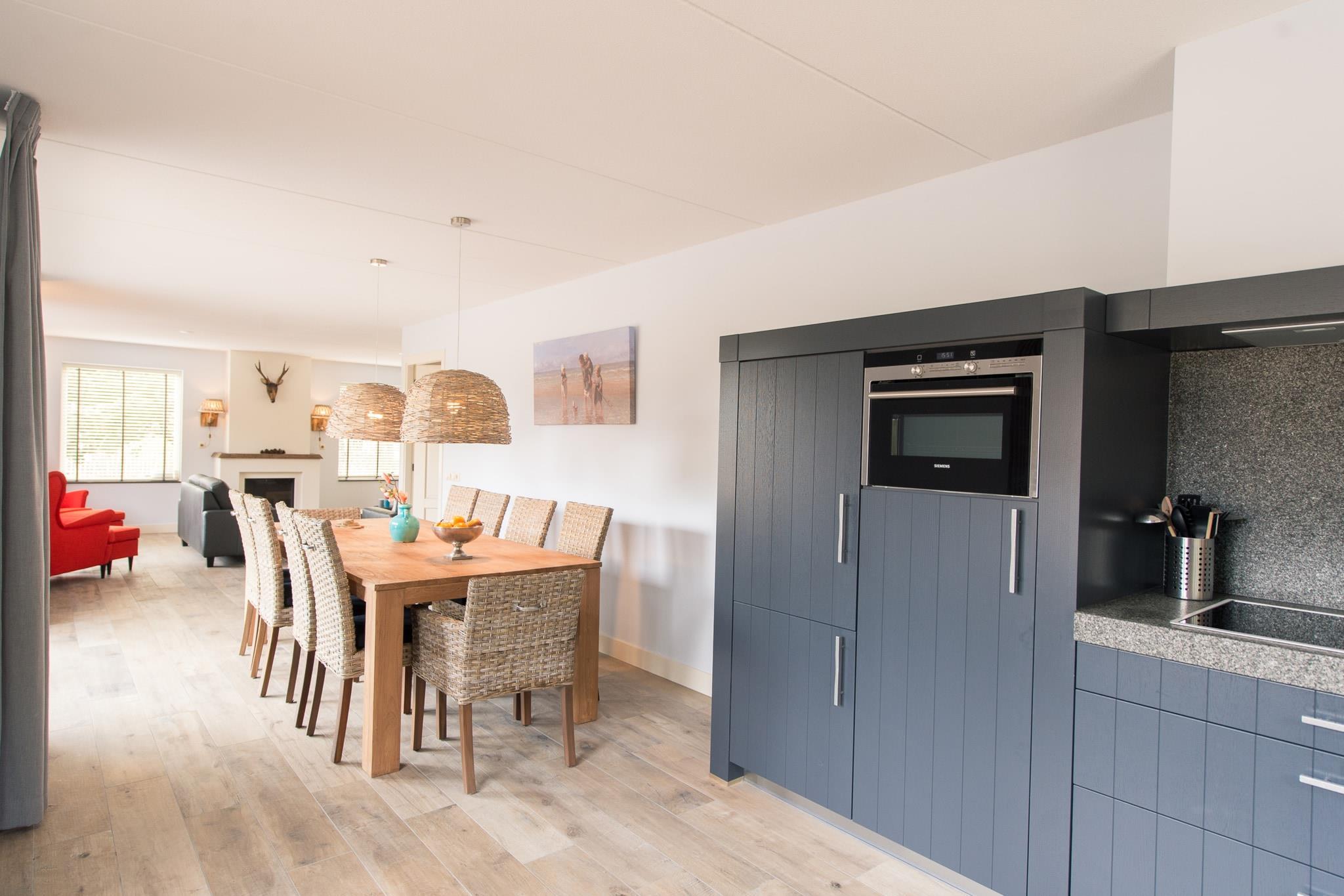 The villa is located on 1300 m2 of dune land with lots of privacy at the end of a dead end street next to the edge of the forest and the dunes of Roosdunen. Through the dunes it is about a 10 minute walk to Ballumerstrand and also 10 minutes to the picturesque village of Ballum. A 5-minute walk away is the outdoor swimming pool where you have free entrance (1/2 May till September). Around Ballum you will find beautiful nature reserves for walking and cycling and from here you can easily explore the entire island. Layout house The design has mainly thought about your comfort. There is a practical utility room (with separate entrance) ideal for boots, beach gear or wet coats; here is also an outside tap, sink, washing machine / dryer combination. In the spacious hall you will find the toilet and the stairs to the top. Alegria has a spacious, attractive living room with a comfortable sitting area, flat screen television, underfloor heating and a gas fireplace. In the bookcase you will find, in addition to a large stock of books, also board games. There is an open kitchen with a large table where you can eat with 10 people. The kitchen is equipped with state-of-the-art appliances, including a dishwasher. The patio doors lead to the terrace which also has a large dining table for 10 people. Bedrooms (4+) On the ground floor is a separate 2-person bedroom with ensuite bathroom (toilet, shower and sink). This room has patio doors to the semi-covered terrace of approximately 62m2 on the south. Good to know is that everything on the ground floor is on the ground floor without thresholds. Upstairs are 3 bedrooms + an extra room. The 3 bedrooms all have 2 box-spring beds. One room also has a desk and television. In addition to the 2 beds, one bedroom also has a nice box bed as a 9th sleeping place. There is enough space for a cot in two bedrooms. The luxurious, comfortable box-spring beds measure 90x210 and can be placed separately or against each other. All rooms have ample closet space. During warm summer evenings, the ceiling fans in the bedrooms can provide cooling. The extra room has an extra bed and sofa, making it ideal as an extra sleeping area for children. It is also furnished as a children's playroom. Wellness and Bathrooms (3) Upstairs is a 2-person infrared sauna and there are 2 bathrooms, one with a sink and shower and a large bathroom with bath, spacious walk-in shower, double sink and toilet. There is also a separate toilet. There is another bathroom in the bedroom on the ground floor (see bedrooms). Outside Along the entire south side is the large sheltered terrace of approximately 62m2 with lovely sun loungers and a large dining table (10 persons). In the summer you can eat outside with the electric barbecue! There is a playhouse in the garden. The garden has been left as natural as possible with dunes and trees and completely surrounded by a fence (ideal with children or pets). It is so quiet here that you can hear the sea and the owls at night. On clear nights, you can count shooting stars from the lounge chairs on the terrace. The house is very child-friendly. The stairs above can be closed with a stair gate, so that children can move freely and safely. The extra (bed) room is furnished as a playroom with television, toys and games. There is private parking for 2 cars At EilandVerhuur you will find studios, luxury apartments, comfortable holiday homes and spacious dune villas. There is something for everyone. Our team lives on Ameland, which means we can provide all the necessary information about the island. We are also always available during your stay. Do you have any questions, or would you just like to get to know us? Call, email or drop by at Torenstraat 18 in Nes on Ameland! See you soon! Team EilandVerhuur