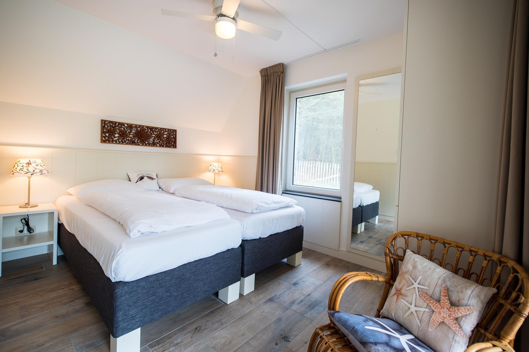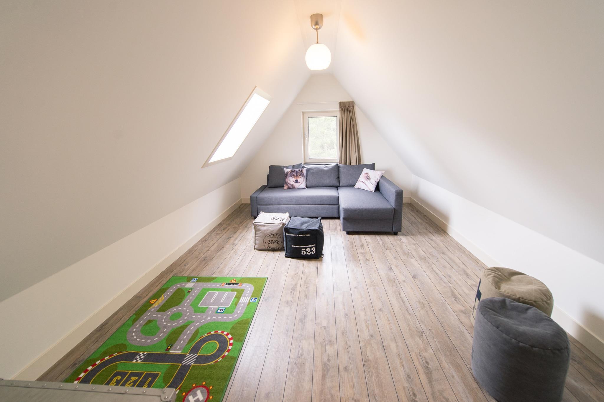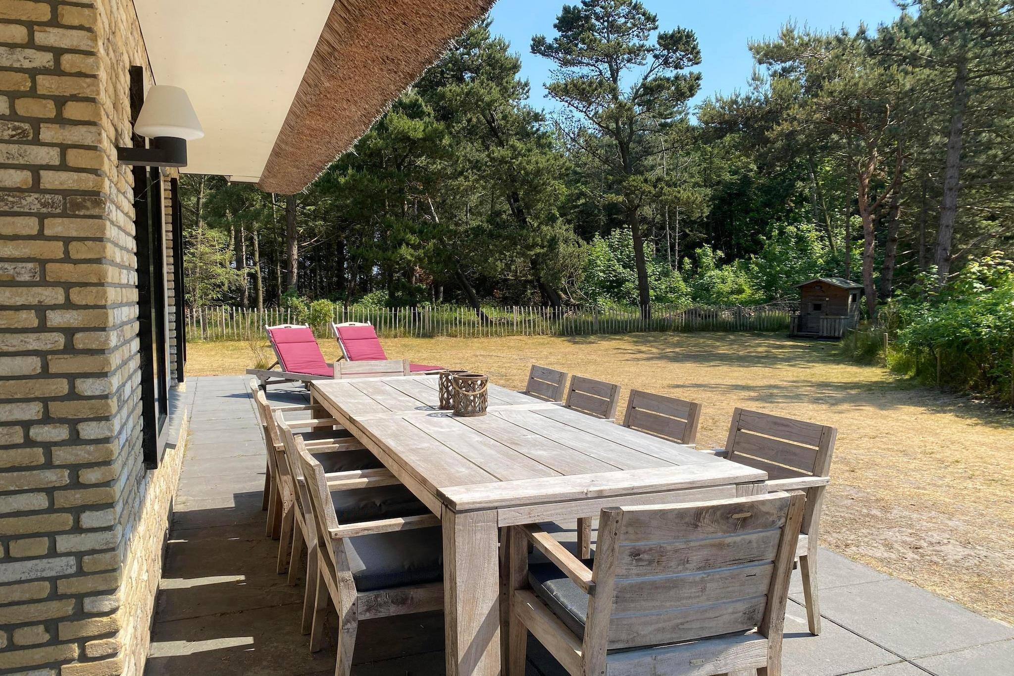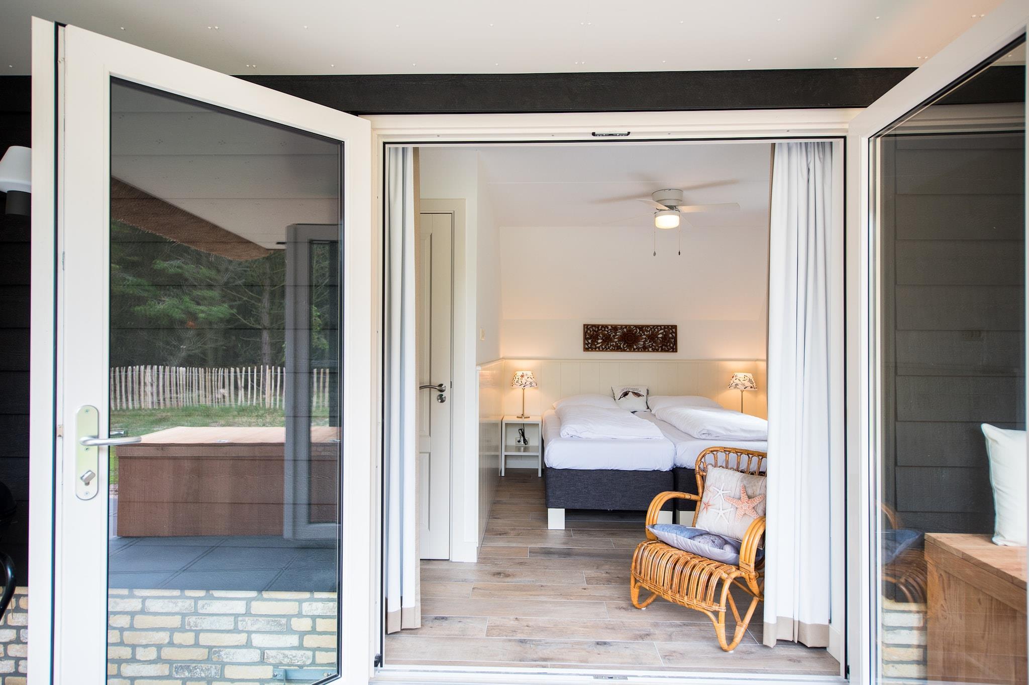 The villa is located on 1300 m2 of dune land with lots of privacy at the end of a dead end street next to the edge of the forest and the dunes of Roosdunen. Through the dunes it is about a 10 minute walk to Ballumerstrand and also 10 minutes to the picturesque village of Ballum. A 5-minute walk away is the outdoor swimming pool where you have free entrance (1/2 May till September). Around Ballum you will find beautiful nature reserves for walking and cycling and from here you can easily explore the entire island. Layout house The design has mainly thought about your comfort. There is a practical utility room (with separate entrance) ideal for boots, beach gear or wet coats; here is also an outside tap, sink, washing machine / dryer combination. In the spacious hall you will find the toilet and the stairs to the top. Alegria has a spacious, attractive living room with a comfortable sitting area, flat screen television, underfloor heating and a gas fireplace. In the bookcase you will find, in addition to a large stock of books, also board games. There is an open kitchen with a large table where you can eat with 10 people. The kitchen is equipped with state-of-the-art appliances, including a dishwasher. The patio doors lead to the terrace which also has a large dining table for 10 people. Bedrooms (4+) On the ground floor is a separate 2-person bedroom with ensuite bathroom (toilet, shower and sink). This room has patio doors to the semi-covered terrace of approximately 62m2 on the south. Good to know is that everything on the ground floor is on the ground floor without thresholds. Upstairs are 3 bedrooms + an extra room. The 3 bedrooms all have 2 box-spring beds. One room also has a desk and television. In addition to the 2 beds, one bedroom also has a nice box bed as a 9th sleeping place. There is enough space for a cot in two bedrooms. The luxurious, comfortable box-spring beds measure 90x210 and can be placed separately or against each other. All rooms have ample closet space. During warm summer evenings, the ceiling fans in the bedrooms can provide cooling. The extra room has an extra bed and sofa, making it ideal as an extra sleeping area for children. It is also furnished as a children's playroom. Wellness and Bathrooms (3) Upstairs is a 2-person infrared sauna and there are 2 bathrooms, one with a sink and shower and a large bathroom with bath, spacious walk-in shower, double sink and toilet. There is also a separate toilet. There is another bathroom in the bedroom on the ground floor (see bedrooms). Outside Along the entire south side is the large sheltered terrace of approximately 62m2 with lovely sun loungers and a large dining table (10 persons). In the summer you can eat outside with the electric barbecue! There is a playhouse in the garden. The garden has been left as natural as possible with dunes and trees and completely surrounded by a fence (ideal with children or pets). It is so quiet here that you can hear the sea and the owls at night. On clear nights, you can count shooting stars from the lounge chairs on the terrace. The house is very child-friendly. The stairs above can be closed with a stair gate, so that children can move freely and safely. The extra (bed) room is furnished as a playroom with television, toys and games. There is private parking for 2 cars At EilandVerhuur you will find studios, luxury apartments, comfortable holiday homes and spacious dune villas. There is something for everyone. Our team lives on Ameland, which means we can provide all the necessary information about the island. We are also always available during your stay. Do you have any questions, or would you just like to get to know us? Call, email or drop by at Torenstraat 18 in Nes on Ameland! See you soon! Team EilandVerhuur