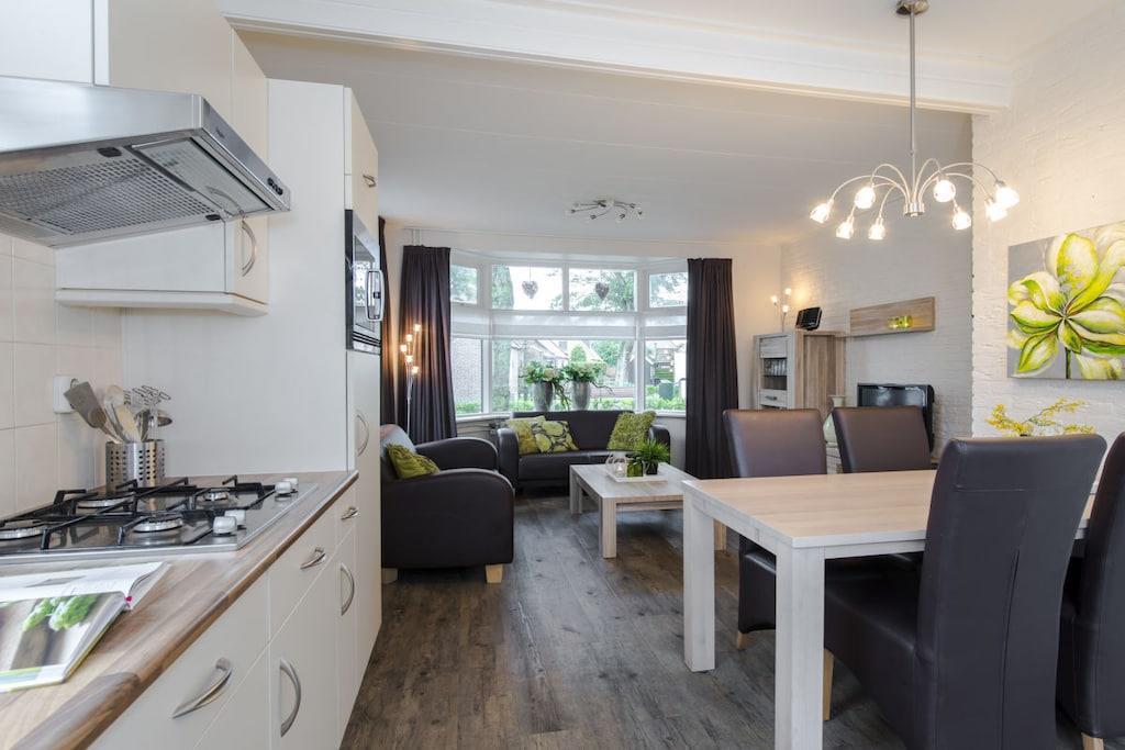 Velkommen til Feriehus Andrea! Feriehuset er egnet til op til 5 personer - ideelt til din familie! Denne dobbelthuslejlighed ligger i den mindre HappyNes feriepark. Når du træder ud af bagdøren, befinder du dig på den store, børnevenlige indendørs terrasse, fuld af sjov for alle aldre. Fra den sydvestvendte terrasse har du et godt udsyn til de legende børn, selvom du er på afstand. Så du kan blive i din lejlighed, mens du holder øje med dine børn! Udefra har Andrea et autentisk udseende, mens den nylige renovering har givet den et moderne og komfortabelt interiør. Fra stuen fører en trappe til øverste etage, hvor der er to soveværelser. Det første soveværelse har en dobbelt boxmadras på 140x200 cm og en enkeltseng. Det andet har to enkeltsenge med boxmadras. Begge soveværelser har egen håndvask og garderobe. Badeværelset har en kompakt bruseniche, en håndvask og et toilet.