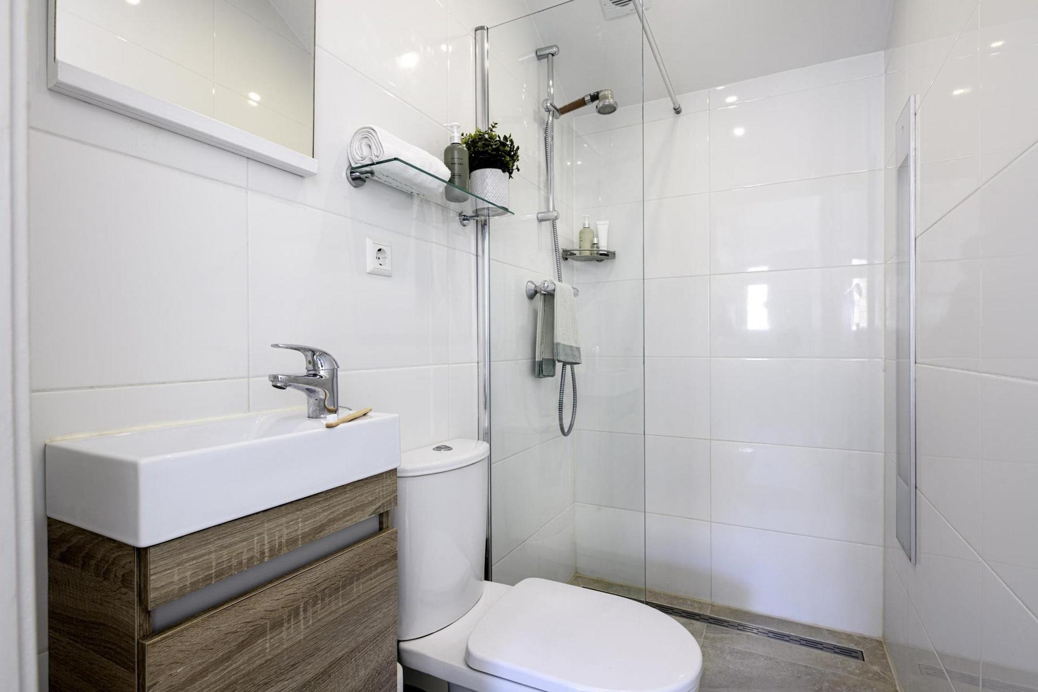 Stueetage: (Stue(dobbeltsovesofa, Fjernsyn), åbent køkken(ovn), soveværelse(dobbeltseng), soveværelse(køjeseng), badeværelse(bruser, håndvask, toilet)) tørretumbler, vaskemaskine, varme(gulvvarme), terrasse