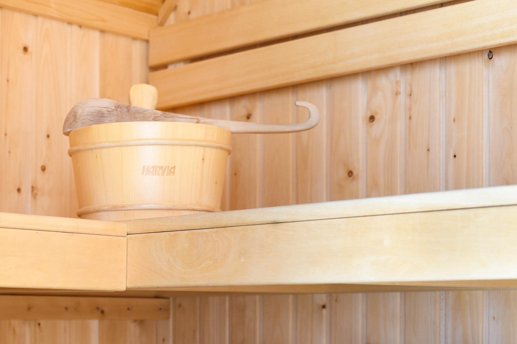Stueetage: (entre(toilet), Stue(Fjernsyn), åbent køkken(elkedel, komfur(gas), kaffemaskine(kopper, kaffetragt), ovn, mikrobølgeovn, opvaskemaskine , køle-fryseskab), Soveværelse med badeværelse(dobbeltseng eller 2 enkeltsenge Senge, Fjernsyn, bruser med lysterapi, håndvask), pulterkammer(vaskemaskine)) På 1. etage: (soveværelse(dobbeltseng eller 2 enkeltsenge Senge), soveværelse(dobbeltseng eller 2 enkeltsenge Senge), badeværelse(badekar med bruser, sauna, håndvask, toilet), Repos) terrasse, have, havemøbler, liggestole, swimmingpool(deles med andre gæster, overdækket), barneseng, barnestol, trappegitter