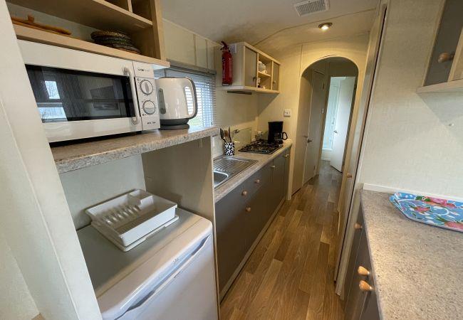 In the gas open plan kitchen, refrigerator, microwave, oven and freezer are provided..