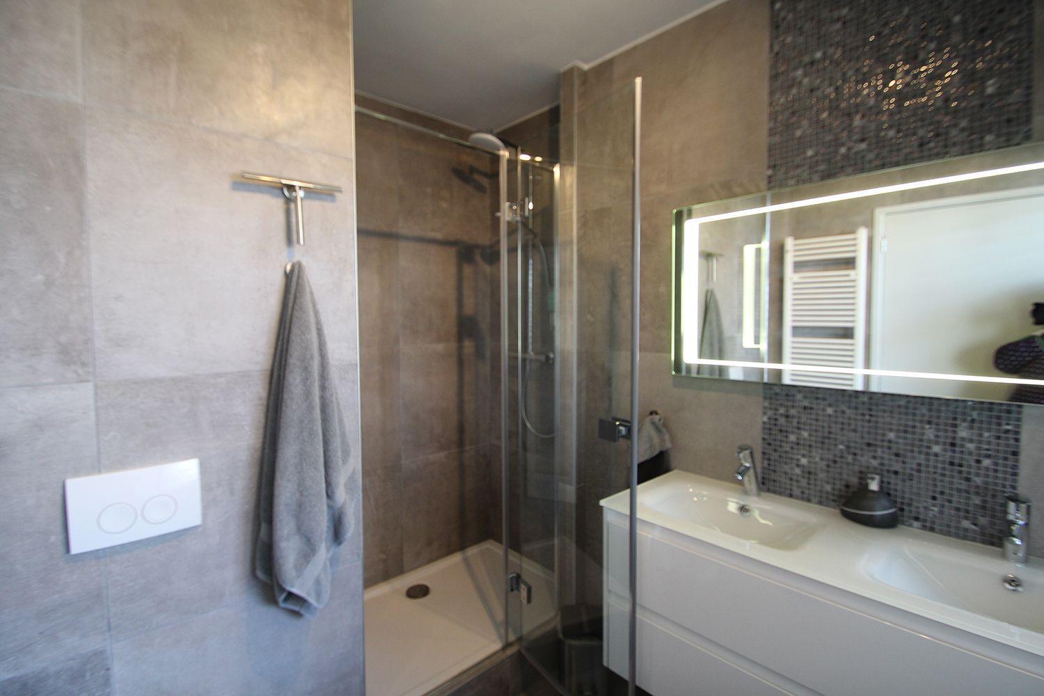 From the kitchen and living room, you can access a cosy and beautifully designed bedroom. The bathroom is also bright and modern and has a spacious shower. The pleasant laminate flooring gives the whole flat a very cosy flair.