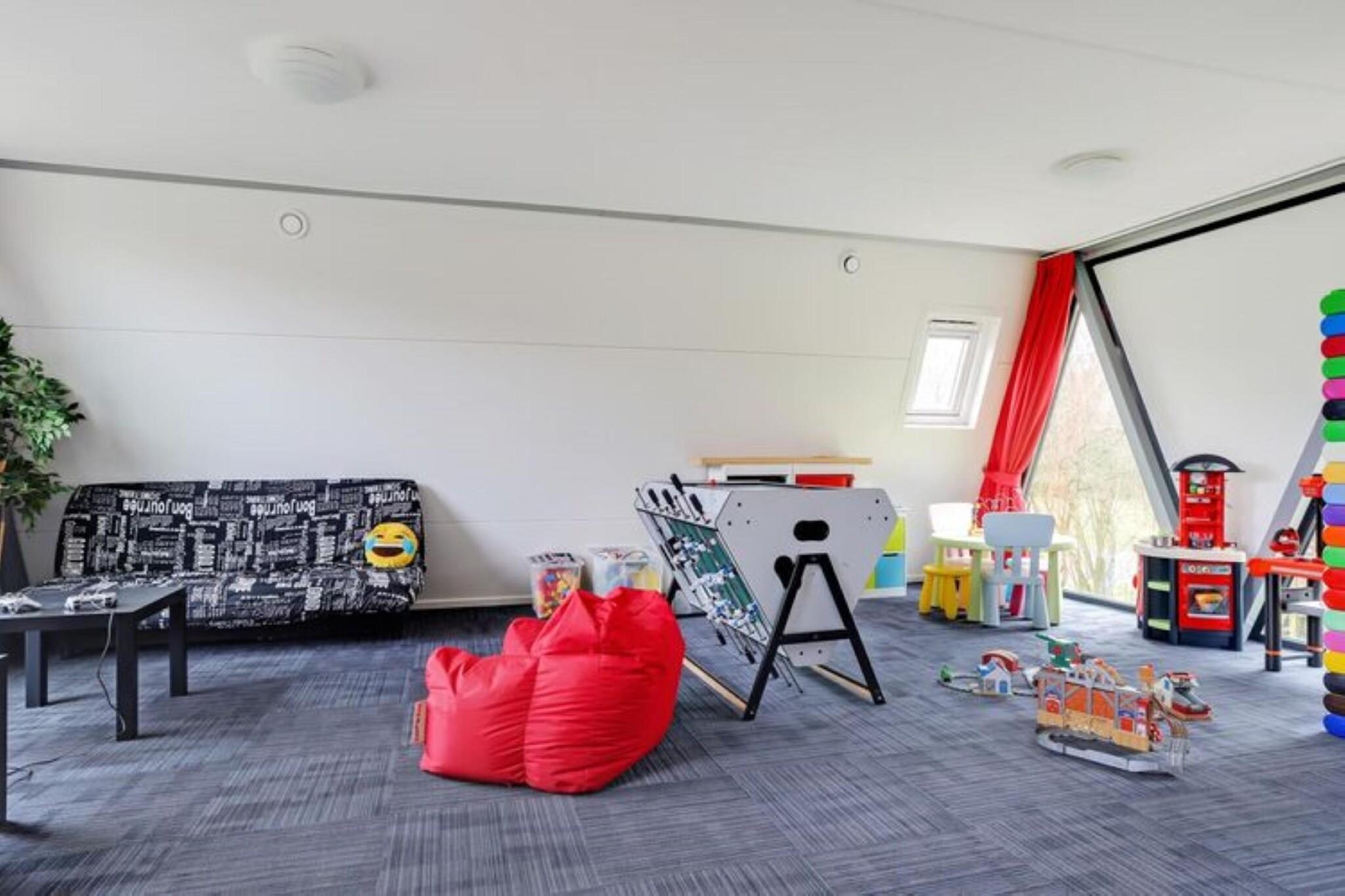Kunne du tænke dig at overnatte i et unikt korthus? Der kan! Dette feriehus byder på wellness for voksne og forskellige rekreative muligheder for børn. Ideel til familier med børn Korthuset ligger i en lille park i Friesland, med unikke huse, masser af privatliv og en naturlig, rolig beliggenhed. Inden for gåafstand ligger det smukke Spokebos, med fine vandrestier til lange og korte gåture. Spokeplas, en rekreativ sø med en sandstrand, ligger lige over for parken. Du kan nyde at cykle i regionen og en udendørs swimmingpool er inden for gåafstand.Feriehuset er et sandt paradis for børn, med en førstesal, der stort set er indrettet til dem. Der er legetøj til rådighed for alle aldre, fra store blokke, et tekøkken og et værksted til en spilcomputer, et kombinationsbord (fodbold, billard, luftfodbold) og et håndværksbord. En bomulds- og popcornmaskine er placeret i køkkenet. Korthuset består af 4 etager og omfatter desuden 2 moderne badeværelser med spabad, sauna og massagebruser.