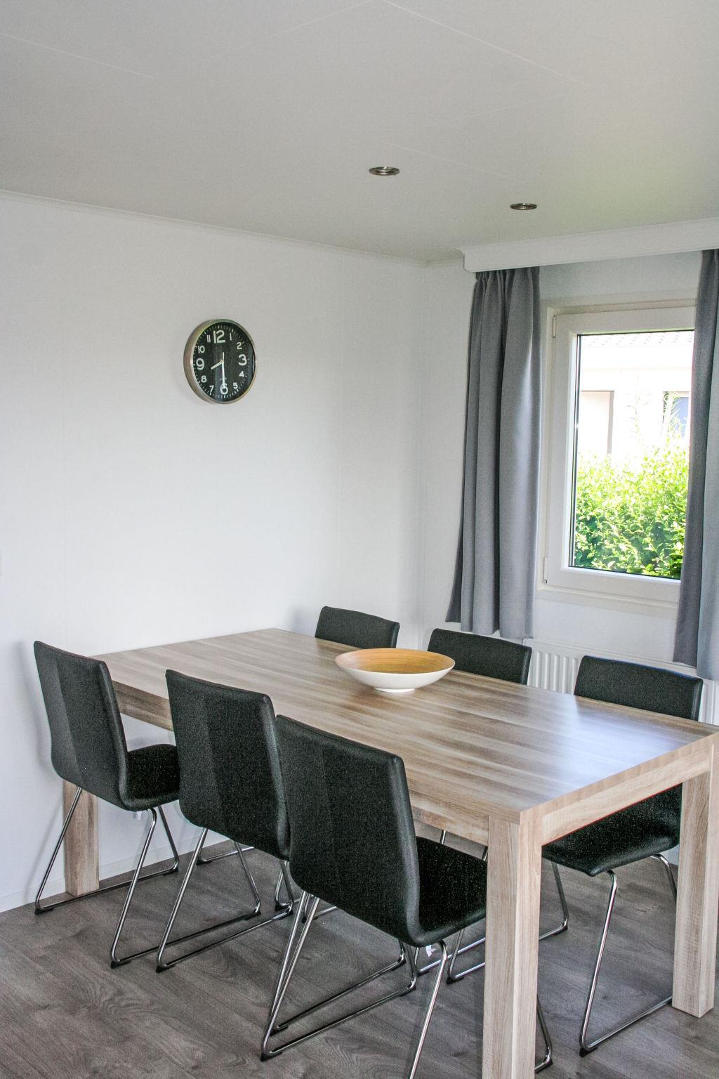 "Luxe 6 persoons", 4-room chalet 44 m2. Very tasteful furnishings: entrance hall with separate WC. 2 double bedrooms, each room with 2 beds. 1 double bedroom with 1 x 2 bunk beds. Living/dining room with dining table and TV. Open kitchen (4 hot plates, dishwasher, kettle, microwave, electric coffee machine). Shower. Heating. Terrace. Terrace furniture, box-room. Facilities: Internet (WiFi, free). Please note: non-smoking house. Smoke alarm. Bookings accepted for holiday purposes only.