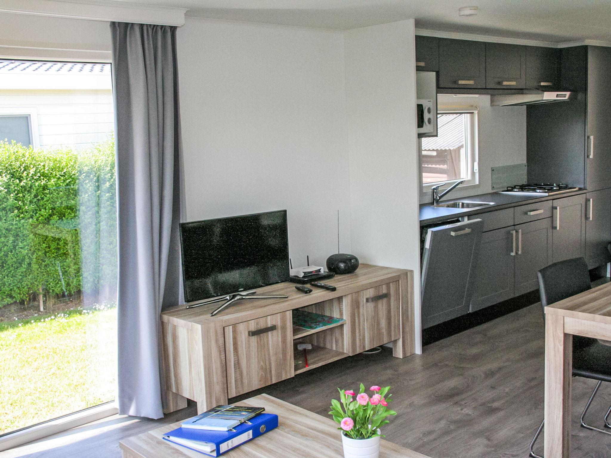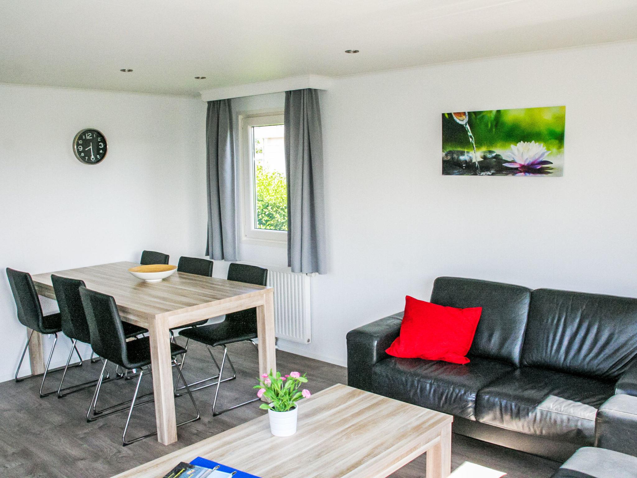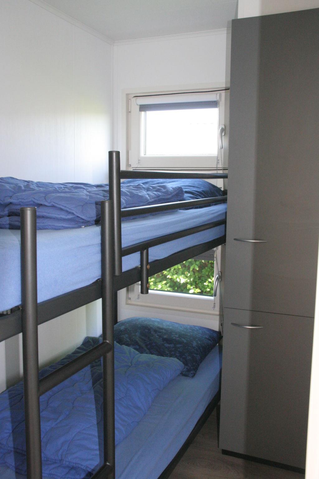"Luxe 6 persoons", 4-room chalet 44 m2. Very tasteful furnishings: entrance hall with separate WC. 2 double bedrooms, each room with 2 beds. 1 double bedroom with 1 x 2 bunk beds. Living/dining room with dining table and TV. Open kitchen (4 hot plates, dishwasher, kettle, microwave, electric coffee machine). Shower. Heating. Terrace. Terrace furniture, box-room. Facilities: Internet (WiFi, free). Please note: non-smoking house. Smoke alarm. Bookings accepted for holiday purposes only.