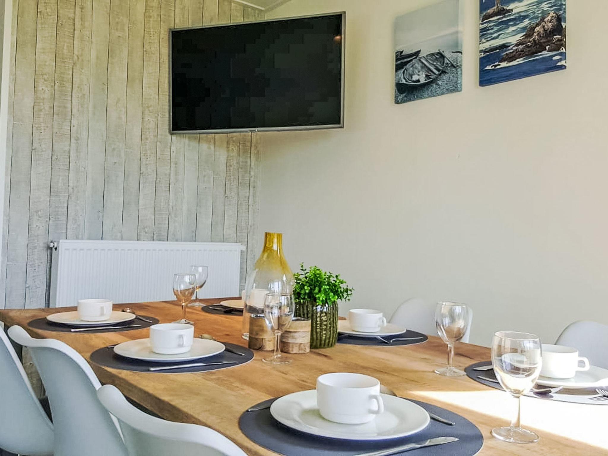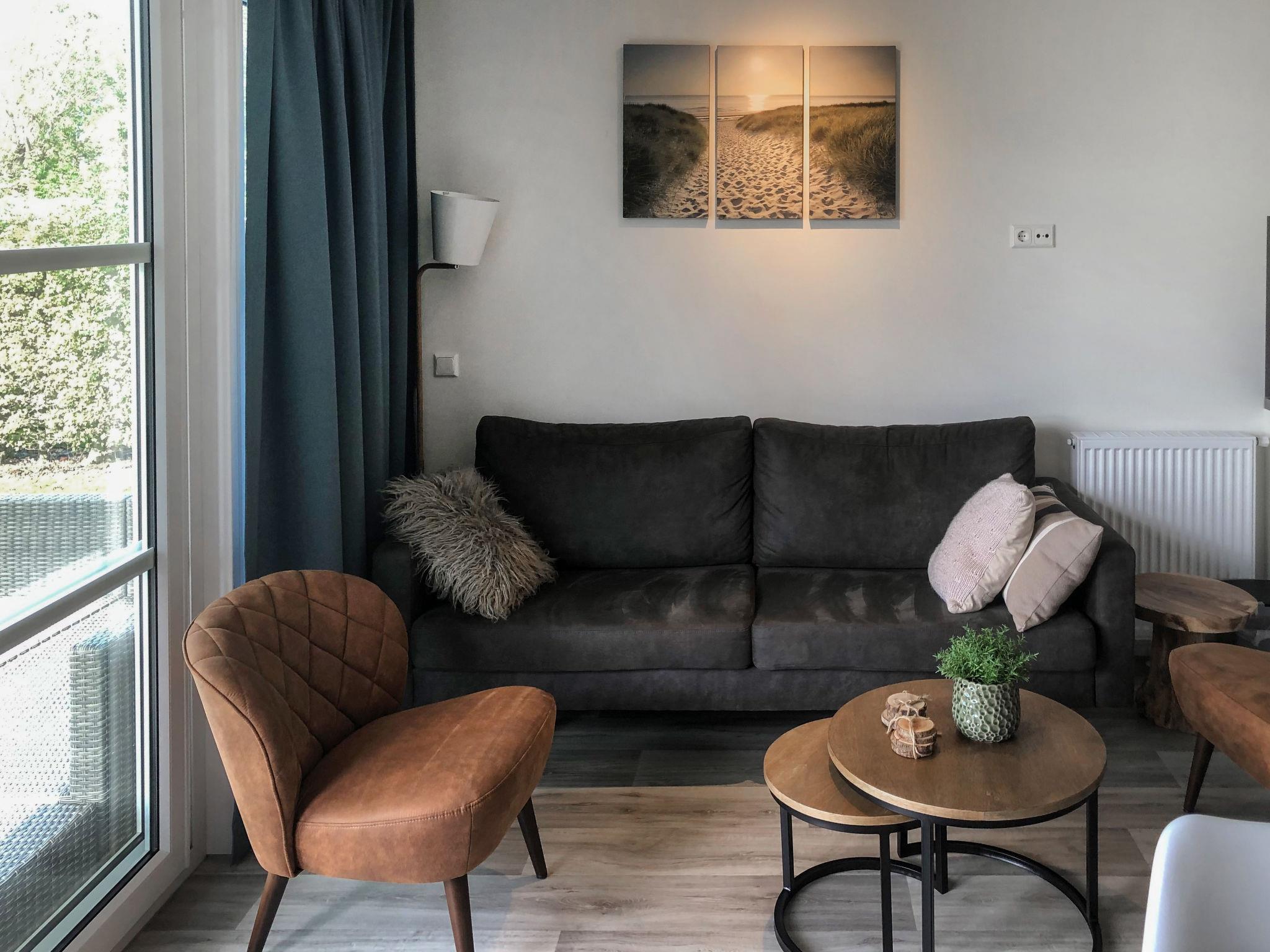 "Long Beach", 4-room chalet 49 m2. Comfortable furnishings: living/dining room with dining table and flat screen. Exit to the terrace. 2 double bedrooms, each room with 2 beds. 1 double bedroom with 1 x 2 bunk beds. Open kitchen (4 hot plates, dishwasher, kettle, microwave, electric coffee machine). Shower/WC. Heating. Terrace 12 m2. Terrace furniture. Facilities: Internet (WiFi, free). Please note: non-smoking house. Smoke alarm. Bookings accepted for holiday purposes only.