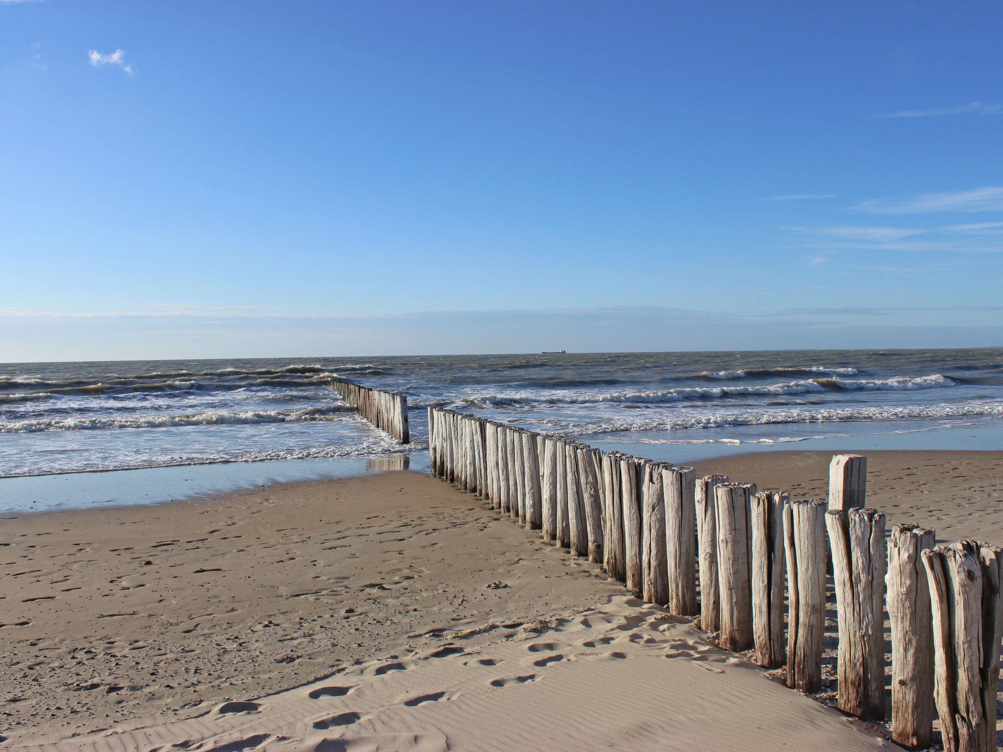 "Long Beach", 4-room chalet 49 m2. Comfortable furnishings: living/dining room with dining table and flat screen. Exit to the terrace. 2 double bedrooms, each room with 2 beds. 1 double bedroom with 1 x 2 bunk beds. Open kitchen (4 hot plates, dishwasher, kettle, microwave, electric coffee machine). Shower/WC. Heating. Terrace 12 m2. Terrace furniture. Facilities: Internet (WiFi, free). Please note: non-smoking house. Smoke alarm. Bookings accepted for holiday purposes only.