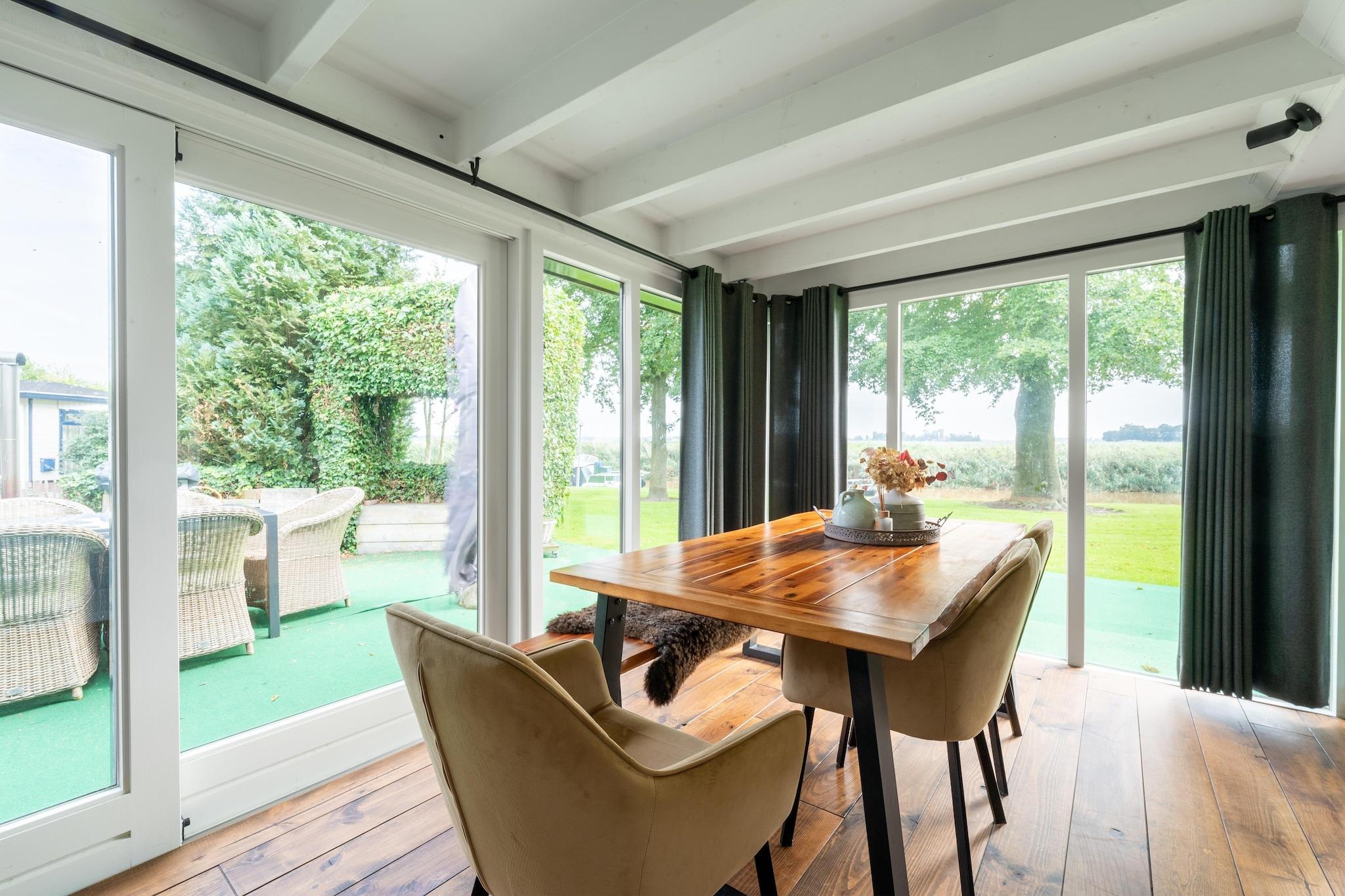 Tilbring en afslappende ferie i det vandrige Friesland. Denne hytte er ideel til familier og ligger på en rummelig grund på 400 m2. Man kan fortøje en båd ved kajen, og der er anløbsbro. Du kan blive længere mod et gebyr. Betal til parkchefen. Det brændefyrede spabad er i forhaven med udsigt over græsplænen. Hytten ligger i en blind vej og er det sidste hus på gaden. Så du kan nyde fred og ro her. Du er kun 10 minutter med båd fra IJselmeer. Det nærmeste supermarked ligger 5 km væk i nabolandsbyen Lemmer. Her finder du også skønne strande og hyggelige terrasser. I forhaven, der er adskilt af et plankeværk, er der et grusareal, hvor spabadet også er placeret. Så der er ingen færdselsåre med trafik eller fodgængere. Du kan finde kombinationslåsen til spabadet i den tilgængelige mappe i hytten, eller du kan også spørge den tilstedeværende leder/kontaktperson. Det luksuriøse køkken er fuldt udstyret til at tilberede lækre måltider. Huset er opvarmet overalt, og det er nemt at bo her selv på koldere dage.