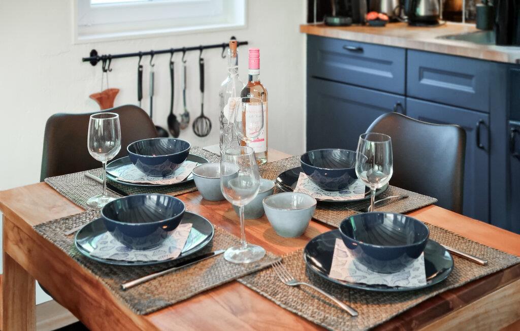 Hjertet af huset er den smukke opholdsstue med spisebord, sofahjørne og åbent køkken, hvor I kan tilbringe afslappende feriedage med at spise eller slappe af i sofaen. Når vejret er godt, skal I helt sikkert tilbringe det meste af ferien på den åbne terrasse i huset og nyde udsigten over landskabet. Nyd solens stråler på havemøblerne.