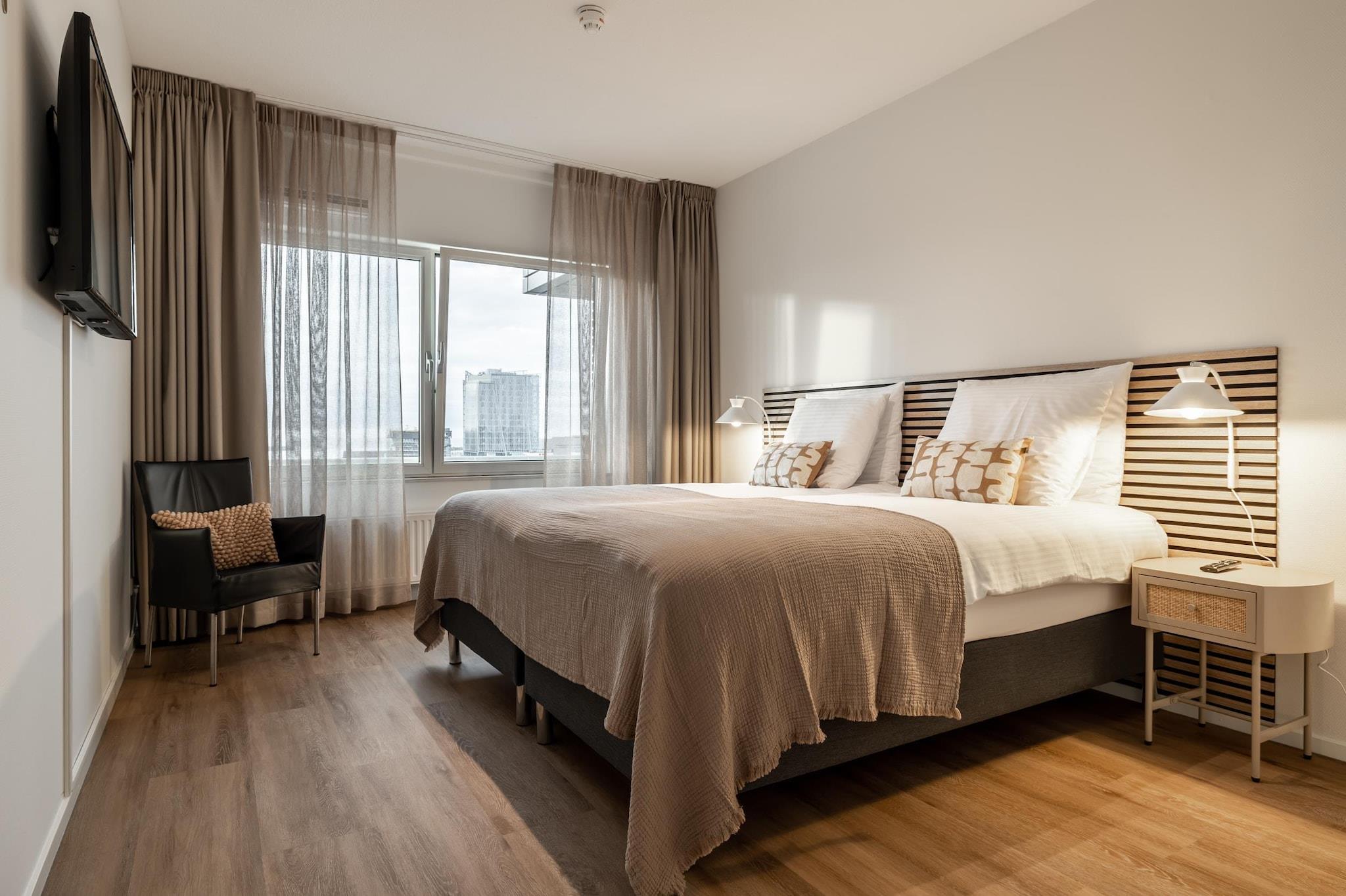 Denne stilfulde 1-værelses lejlighed (84m²) med en privat balkon tilbyder smuk havudsigt og et sæde på forreste række til den travle havn ved Scheveningens Nautical Centre. Kun 15 minutter fra Haags pulserende bymidte kombinerer det komfort, bekvemmelighed og beliggenhed. Lejligheden har et fuldt udstyret køkken, rummeligt badeværelse, separat toilet, vaskeri og en elevator med direkte adgang fra parkeringskælderen. Perfekt til par eller familier, den kan sove op til 4 gæster med en komfortabel boksmadrasser og to sammenklappelige kvalitetssenge. SMART TV og hurtig WiFi sikrer underholdning under hele dit ophold. Lejligheden ligger i gåafstand fra stranden, toprestauranter, supermarkeder og den berømte Simonis fiskebutik, og placerer dig i hjertet af Hollands mest berømte badeby. Nyd den nærliggende mole med dets pariserhjul, strandpavilloner og kulturelle attraktioner som Madurodam, kunstmuseer og Louwman-museet. En privat parkeringsplads er inkluderet, med mere tilgængelig på anmodning. Den ideelle blanding af strand- og byliv gør denne lejlighed til et yndet tilflugtssted år efter år.