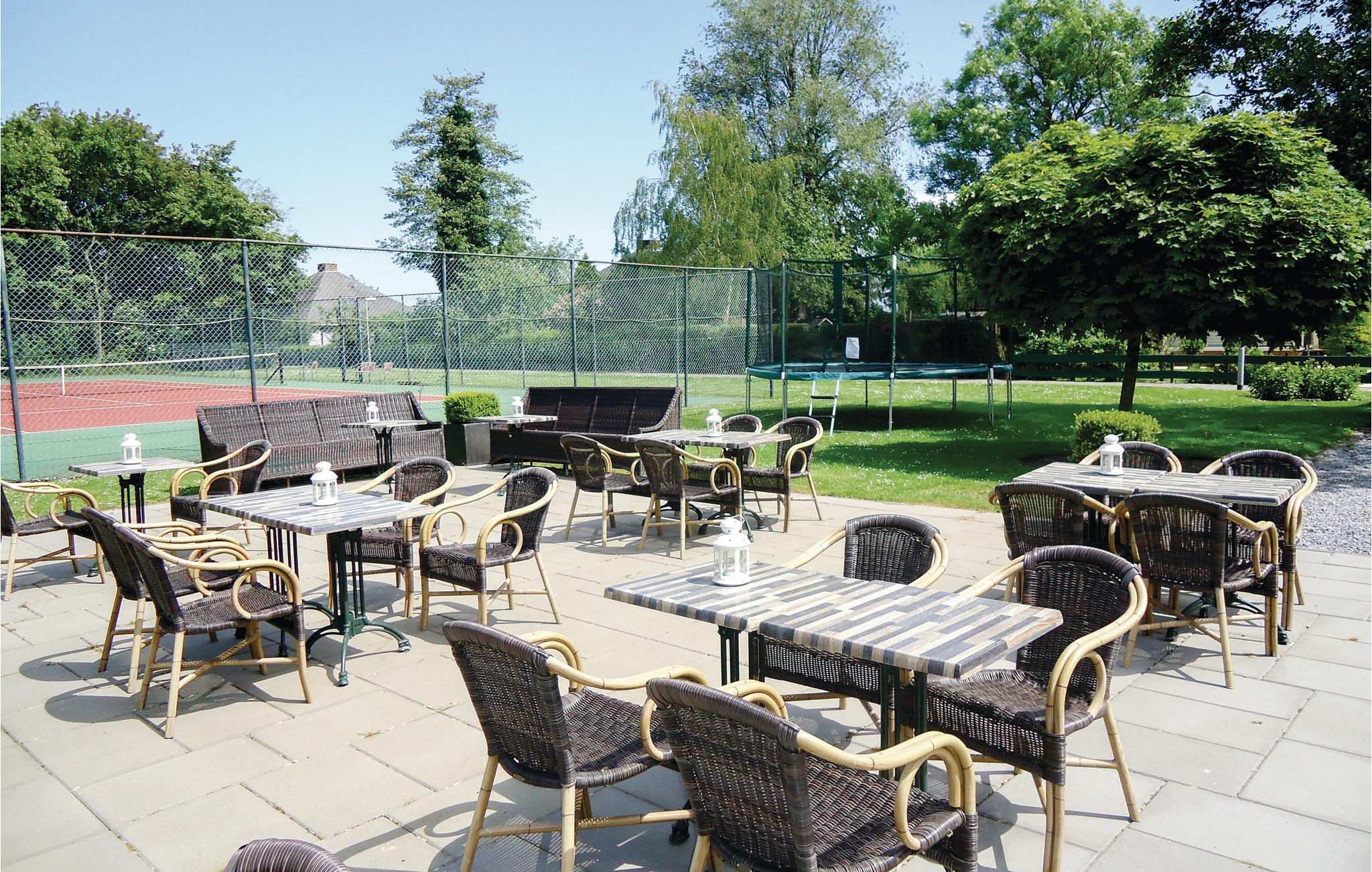 Gå ud på den rummelige terrasse, og brug loungeområdet til afslappende pauser i det fri. Den velholdte have er omgivet af en høj hæk, hvilket giver en behagelig følelse af privatliv. Spis under den overdækkede terrasse, og lad børnene lege i den overskuelige have. Svøm baner i ferieområdets fælles udendørspool, eller spil en runde tennis.