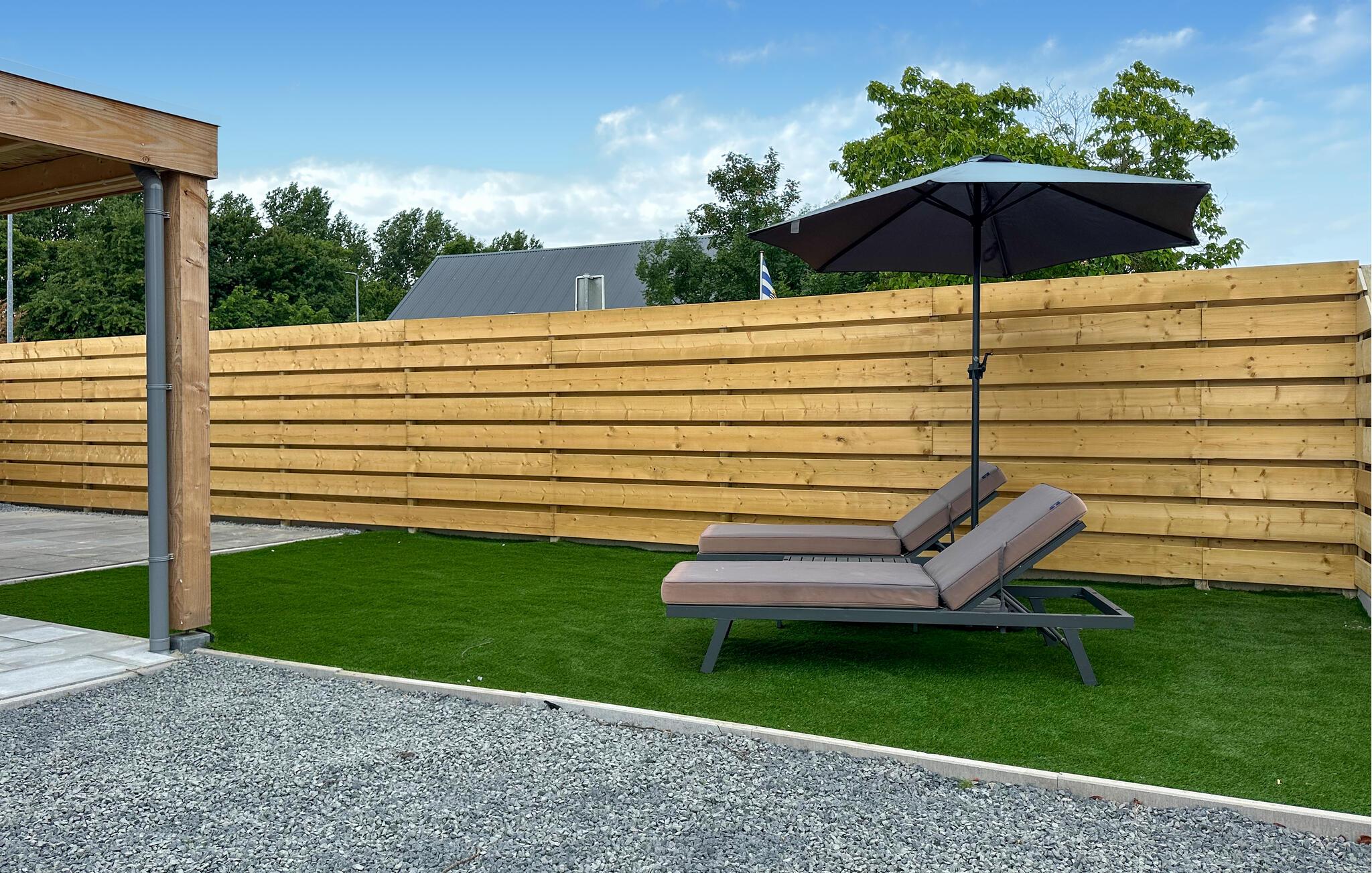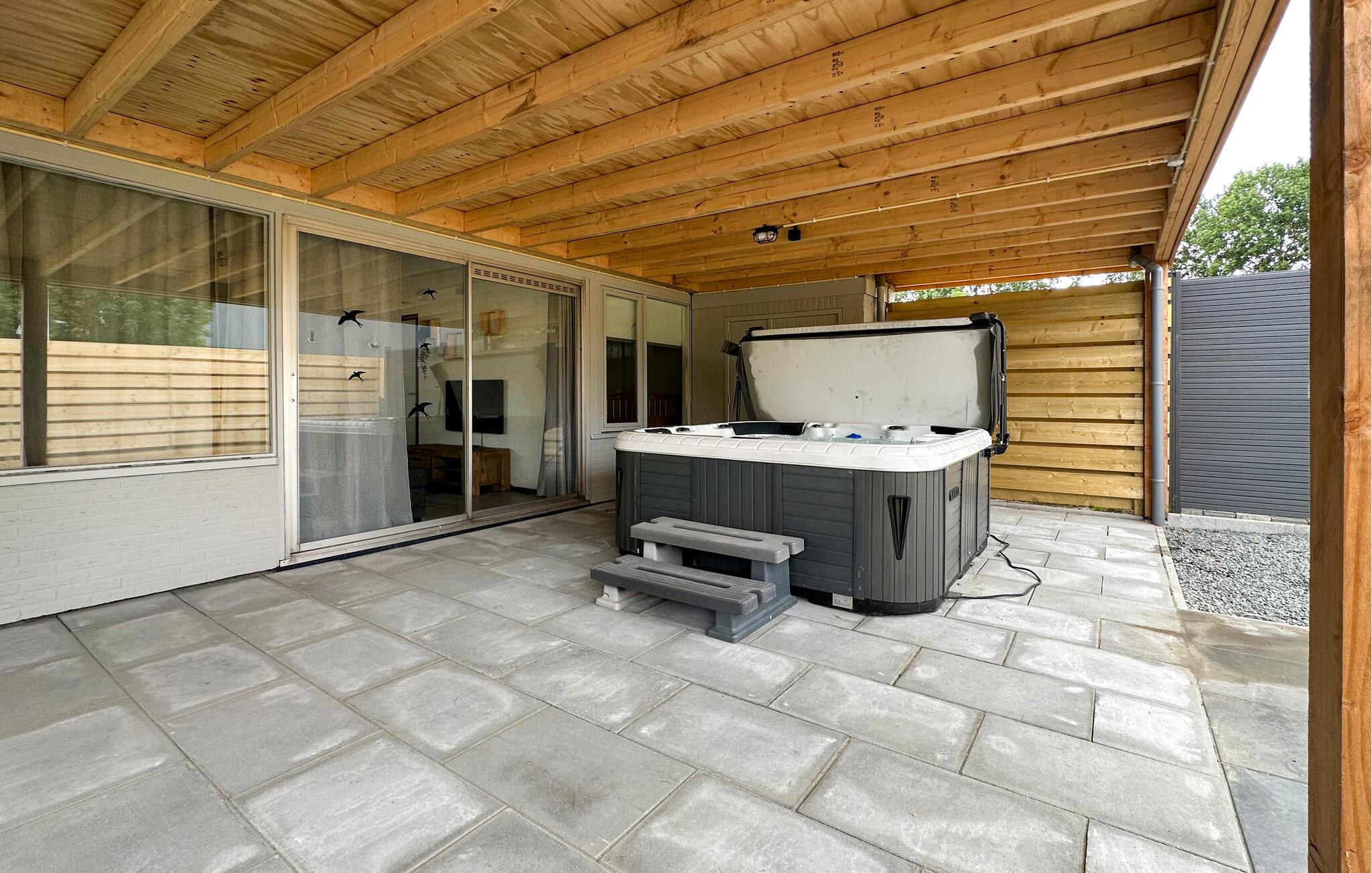 Udnyt det private udendørsområde, som kan prale af overdækkede terrasser, loungemøbler med lækre kvalitetsløsninger og masser af privatliv. Slap af med en bog på liggestolene under parasollen eller Slå jer ned ved det store havebord. Afslut dagen i det boblende spabad, og nyd den overdækkede atmosfære uanset vejret.