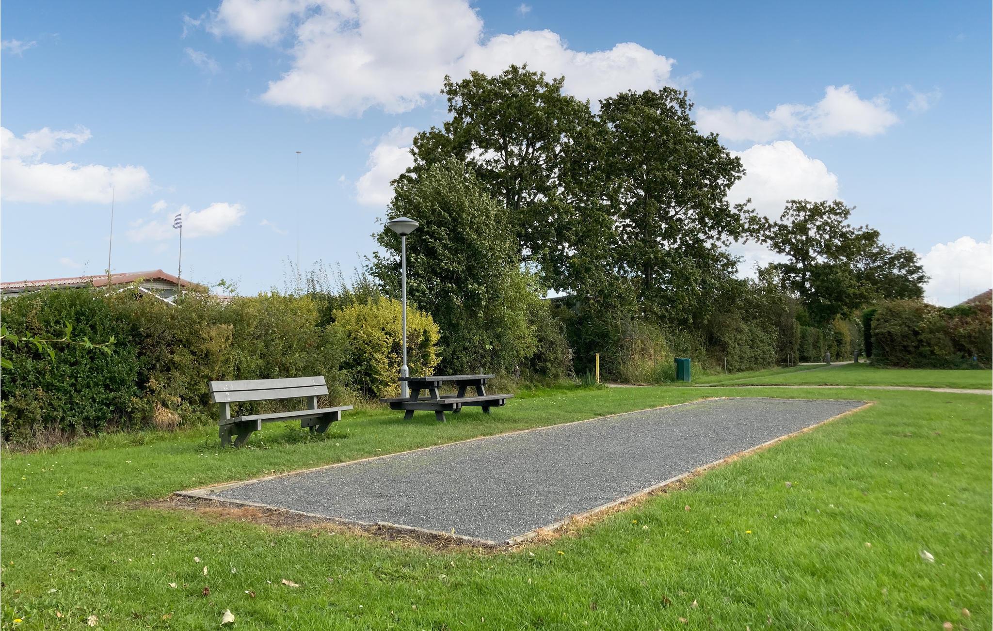 Når vejret er varmt, kan I benytte den fælles pool eller se børnene lege på legepladsen eller spille fodbold.