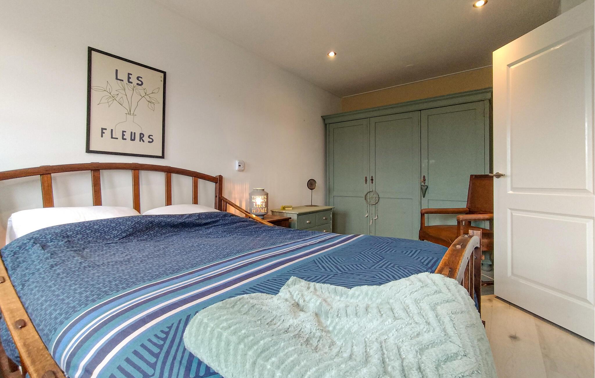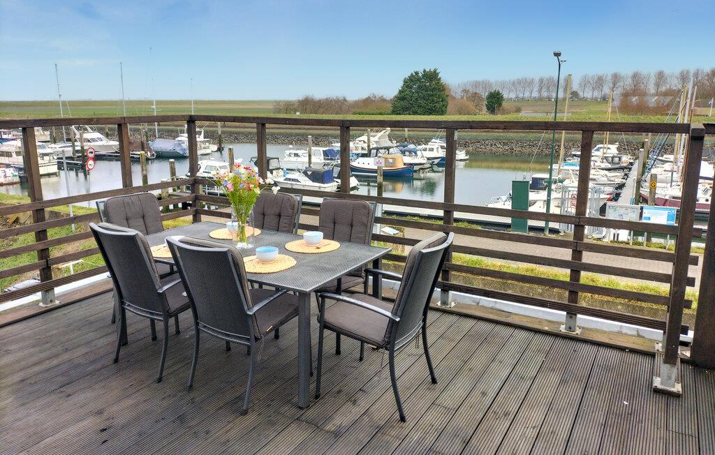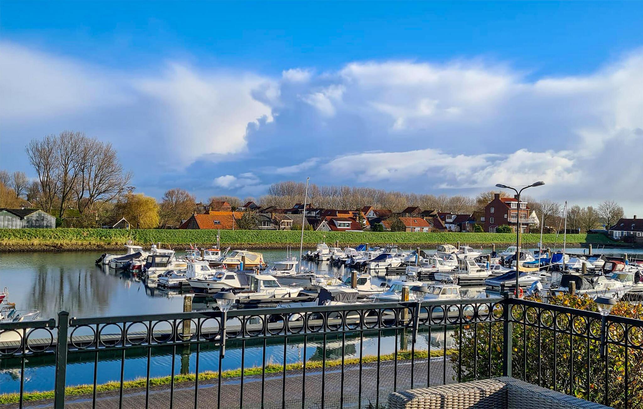 Nyd en fantastisk udsigt over vandet og båden fra dette feriehus ved havnen.