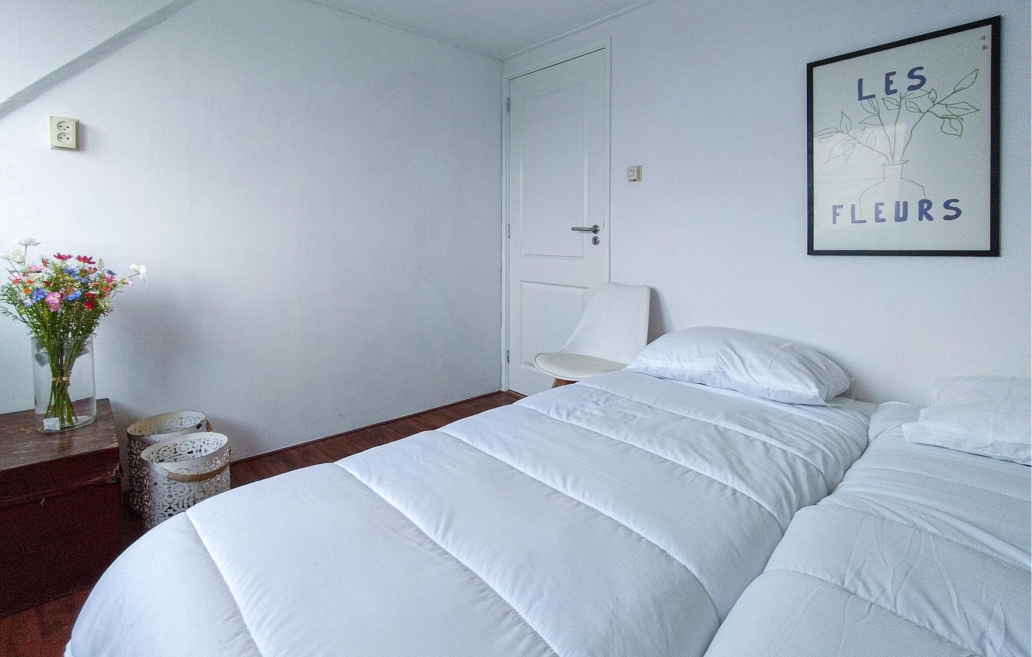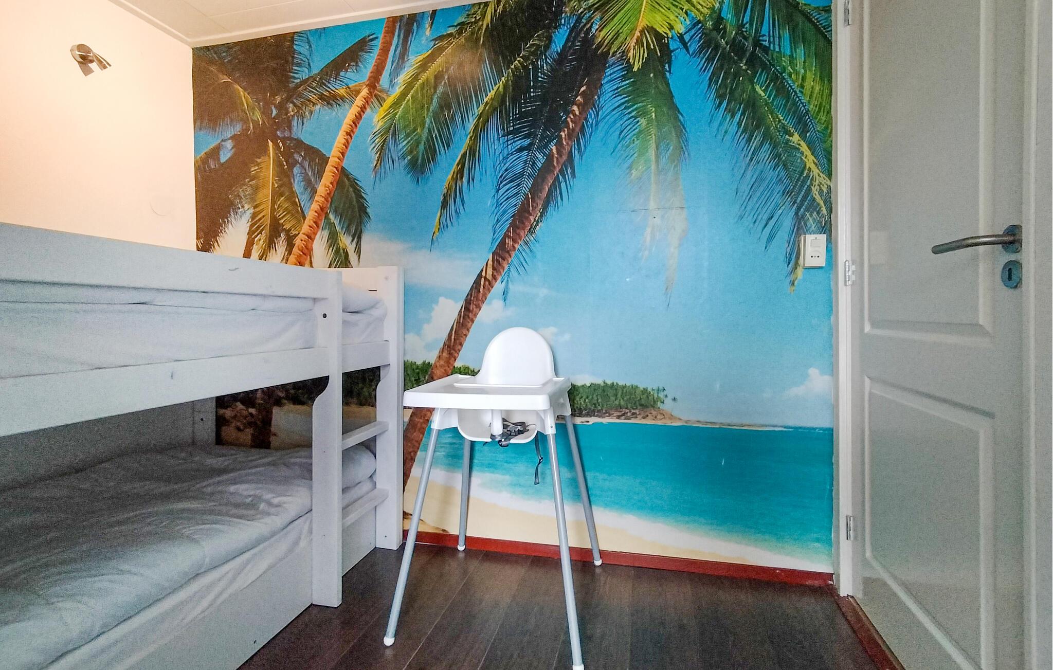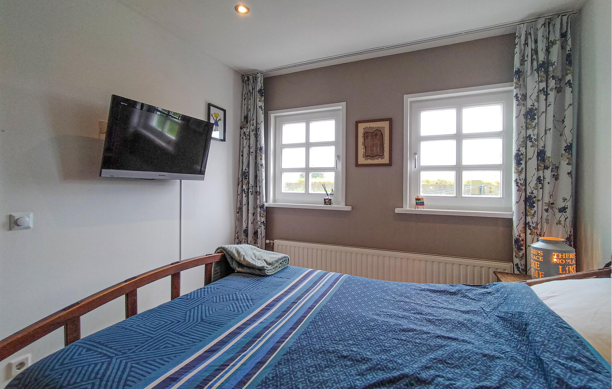 Nyd en fantastisk udsigt over vandet og båden fra dette feriehus ved havnen.