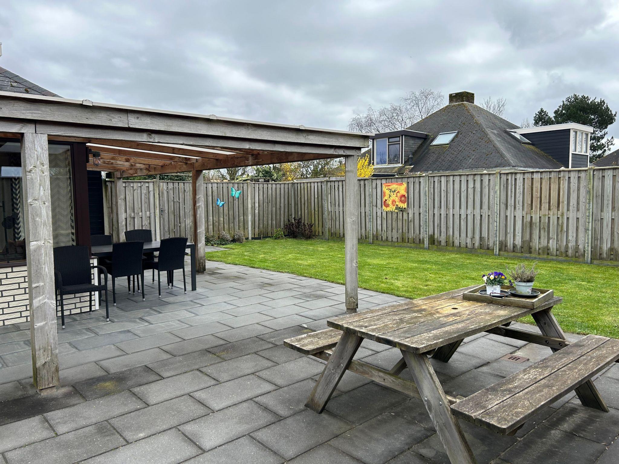 The bungalow is located on a 225 m² fully fenced plot. The covered terrace has a table with chairs and two deck chairs. A barbecue is also available.