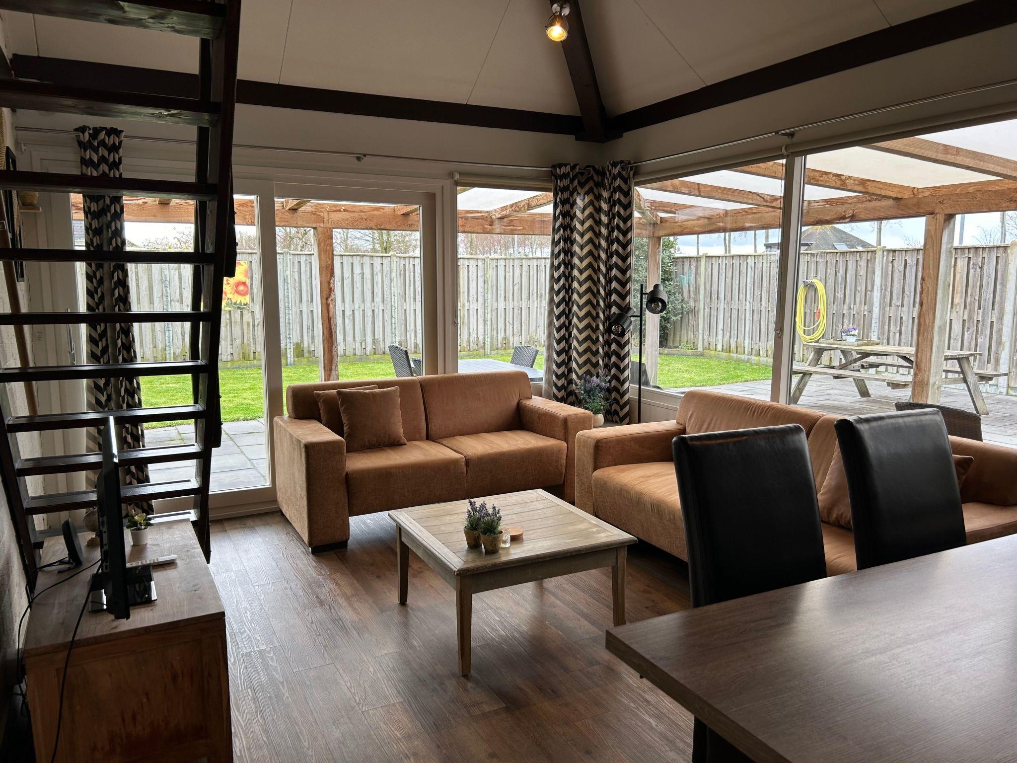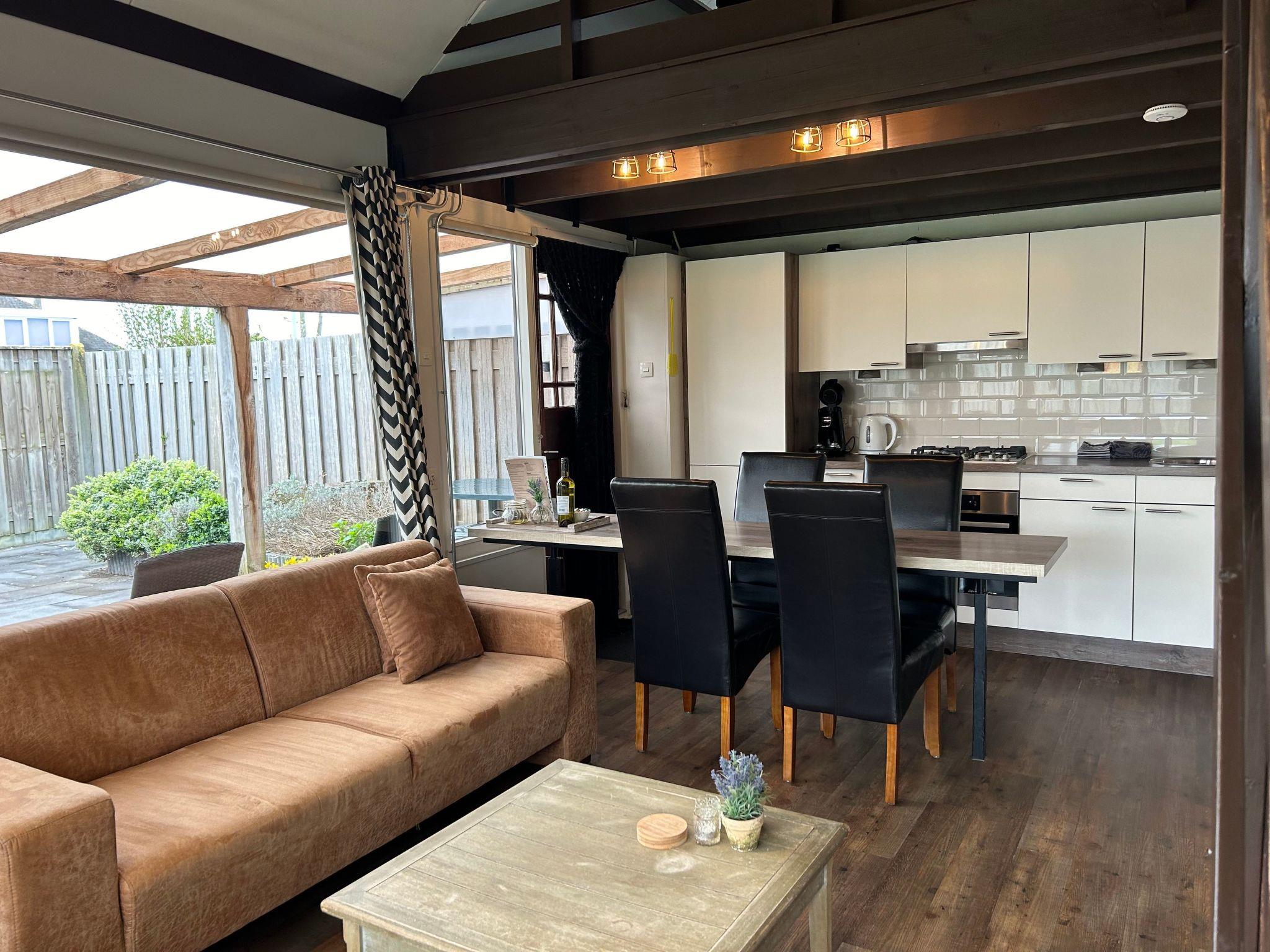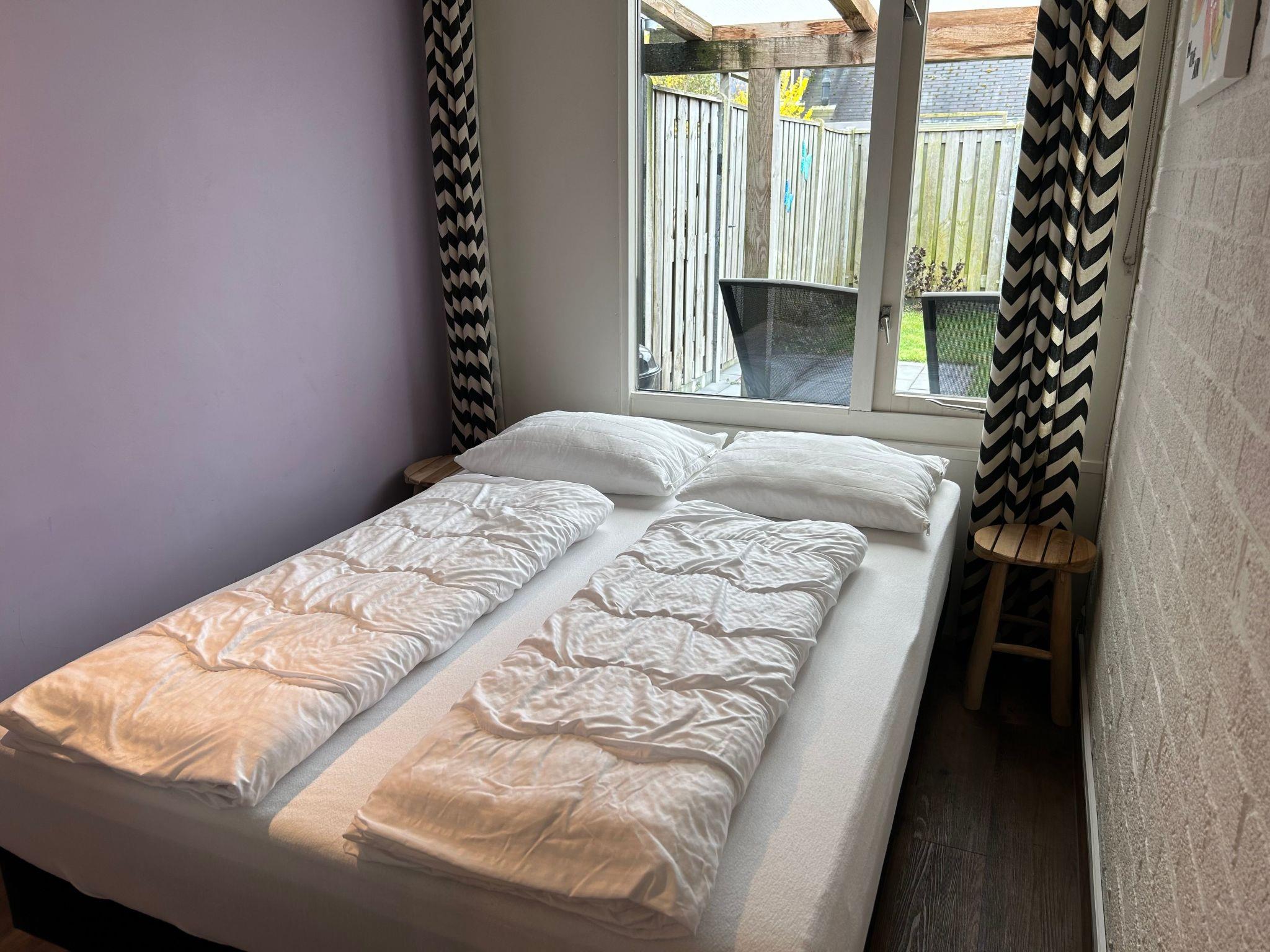 The bungalow has a living/dining room with open kitchen, two bedrooms, a sleeping area on the open upper floor and a bathroom. On the ground floor is the living/dining room with central heating, a comfortable seating area with television with internet access. The open kitchen is equipped with a large fridge, a freezer, a dishwasher, an oven, a microwave, a toaster, a sandwich maker, an egg cooker, a blender, a Senseo coffee machine, a filter coffee machine, a kettle and a gas cooker. There is also a bedroom with a 140 cm x 200 cm box-spring bed on the ground floor. The bathroom has a walk-in shower, toilet and washbasin. Upstairs is a bedroom with two 90 cm x 200 cm box-spring beds. There is another single bed in the open space upstairs. The washing machine is in the scullery next to the kitchen. There you will also find a clothes rack.