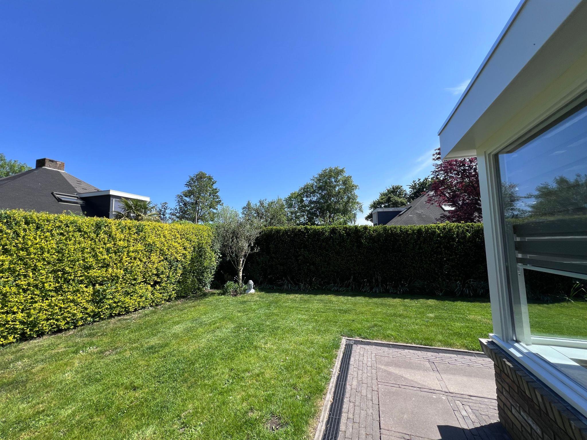 The garden is surrounded by a fence which gives the house a lot of privacy. The yard has a part with grass and another part with tiles where you will find a covered area with a lounge set for 4 persons a big parasol and a dinning table with 4 chairs . There is also a BBQ where you can make very nice meals.