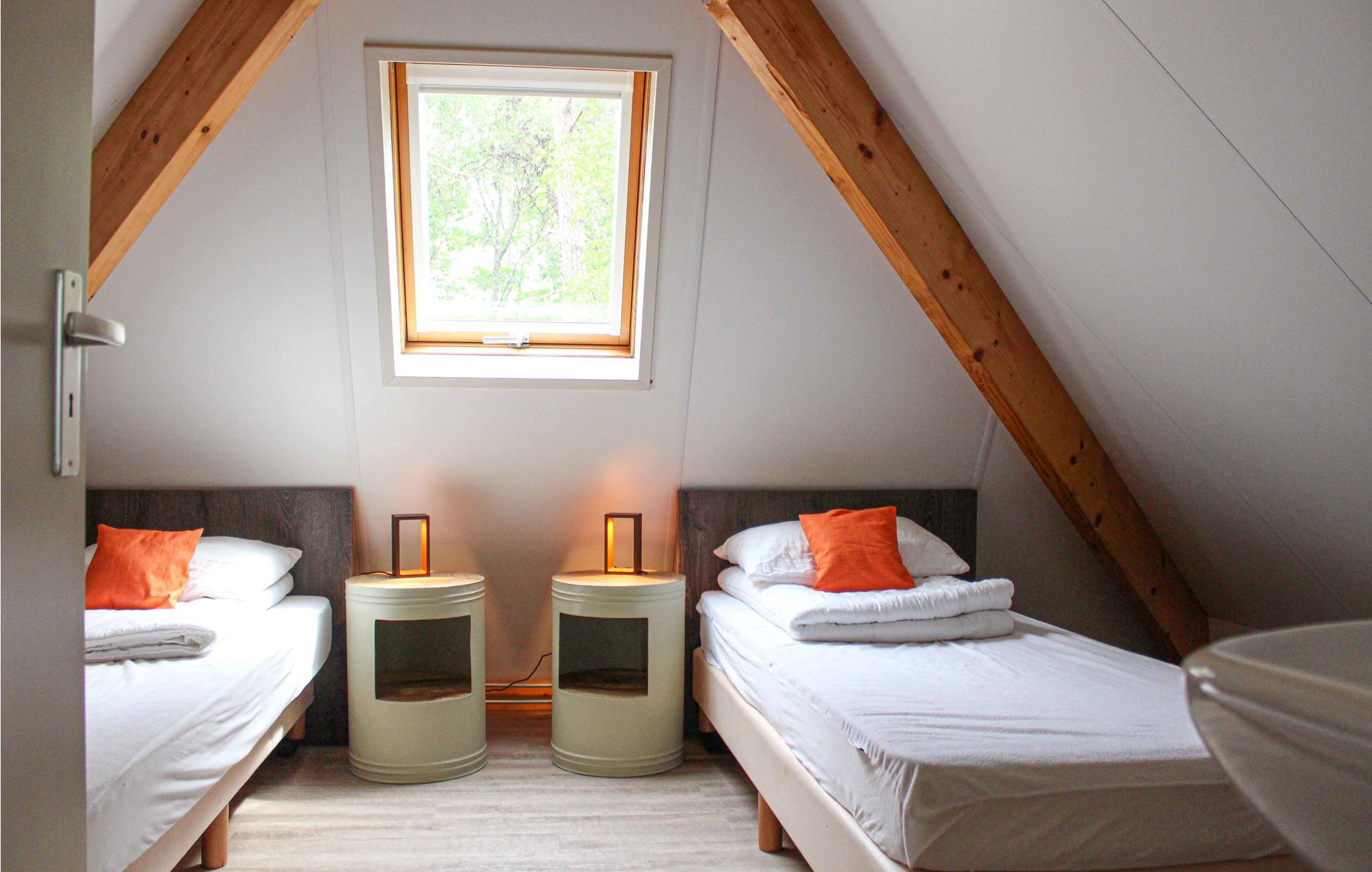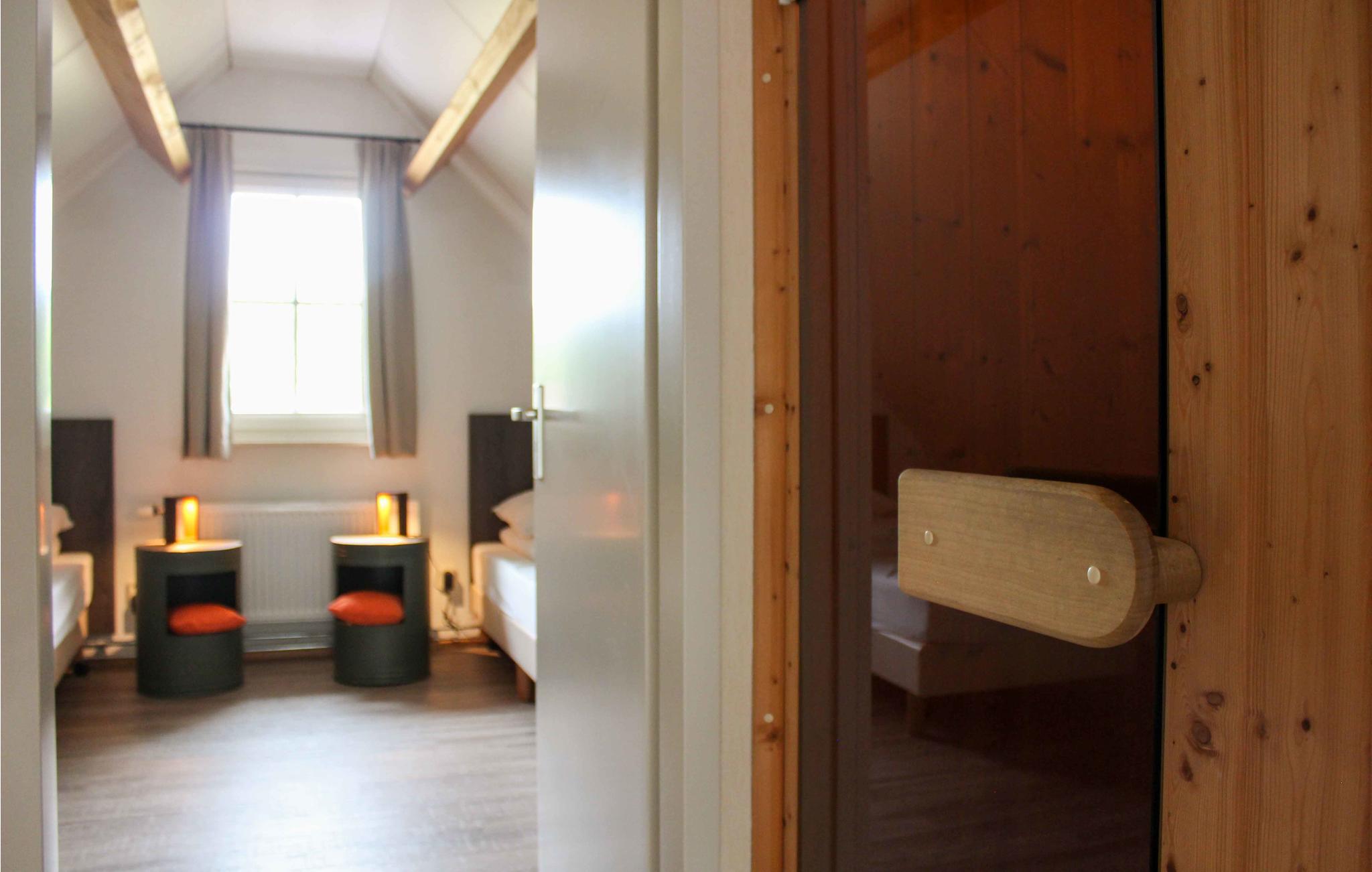 På en ejendom på ikke mindre end 14 ha og på grænsen til Overijssel, Friesland og Drenthe er der 7 smukke og rummelige feriehuse. Dette hus har en infrarød sauna, er smagfuldt og komfortabelt møbleret og fuldt udstyret inklusive WiFi, fladskærms-tv, opvaskemaskine og mikroovn. Huset er velegnet til op til 6 personer og tilbyder en masse privatliv på grund af det skovklædte område. De andre to soveværelser og den infrarøde sauna er på første sal.