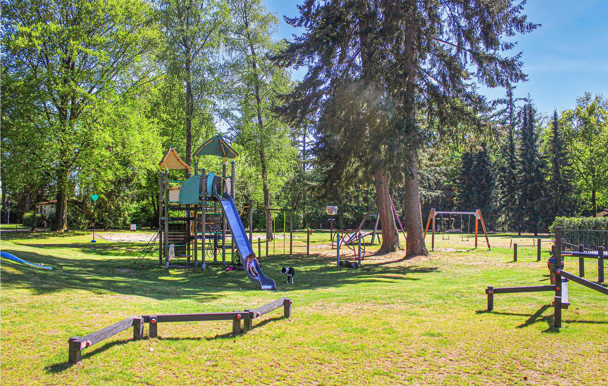 Det velholdte feriehus er pænt indrettet i varme og lyse farver. Udenfor har feriehuset en dejlig have med terrasse og havemøbler. Stuen med åbent køkken har adgang til terrassen. Feriehuset har to soveværelser og badeværelse med bruser, toilet og håndvask. Skuret har plads til cykler. Da de skønne omgivelser byder på mange vandremuligheder, er dette feriehus det rigtige valg til en ferie med hunde. Den indbydende feriepark har en fremragende beliggenhed og omfatter en restaurant, en stor legeplads og et stort børnebassin med legeredskaber. En offentlig udendørspool ligger kun få minutters gang fra ferieparken.