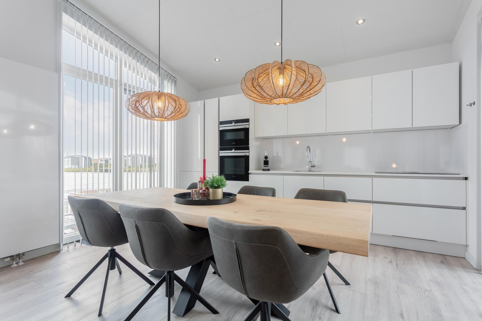 Stilfuldt ophold ved vandet for hele familien Slap af i komfort og moderne elegance i dette smukt designede 6-personers feriehus i naturskønne Zeeland. Med store vinduespartier, hyggelig gaspejs og rummelig åben planløsning indbyder opholds- og spiseafdelingen til afslapning og samvær. Det slanke køkken er fuldt udstyret, inklusive en kogende vandhane og ovn - perfekt til familiemåltider eller aftensnacks. Tre velindrettede soveværelser og to moderne badeværelser gør det til et ideelt valg for familier eller par, der rejser sammen. Slap af udendørs ved vandet Træd udenfor til din private oase - dette hjem har en overdækket terrasse til skyggefulde morgener og en smuk anløbsbro ved vandet, komplet med et loungesæt og liggestole. Uanset om du nyder morgenmad al fresco, læser ved kajen eller nyder udsigten til den gyldne time, er udendørsrummet designet til ultimativ fred og fritid. Med aircondition, havemøbler og gennemtænkte faciliteter overalt, er komfort garanteret både inde og ude. Charme ved havet og lokale lækkerier Beliggende i fredelige Wemeldinge, ligger dette feriehus dig kun få minutter fra Oosterschelde-kysten. Tilbring dine dage med at cykle langs digerne, udforske de nærliggende strande eller besøge charmerende havnebyer. Selvom kæledyr ikke er tilladt, er der masser at nyde i nærheden for enhver rejsende – fra fisk og skaldyrsfester på De Brouwerij til solnedgangsdrinks på Brasserie de Y. En moderne, rolig tilflugtssted, hvor Zeelands naturlige skønhed møder ubesværet liv.