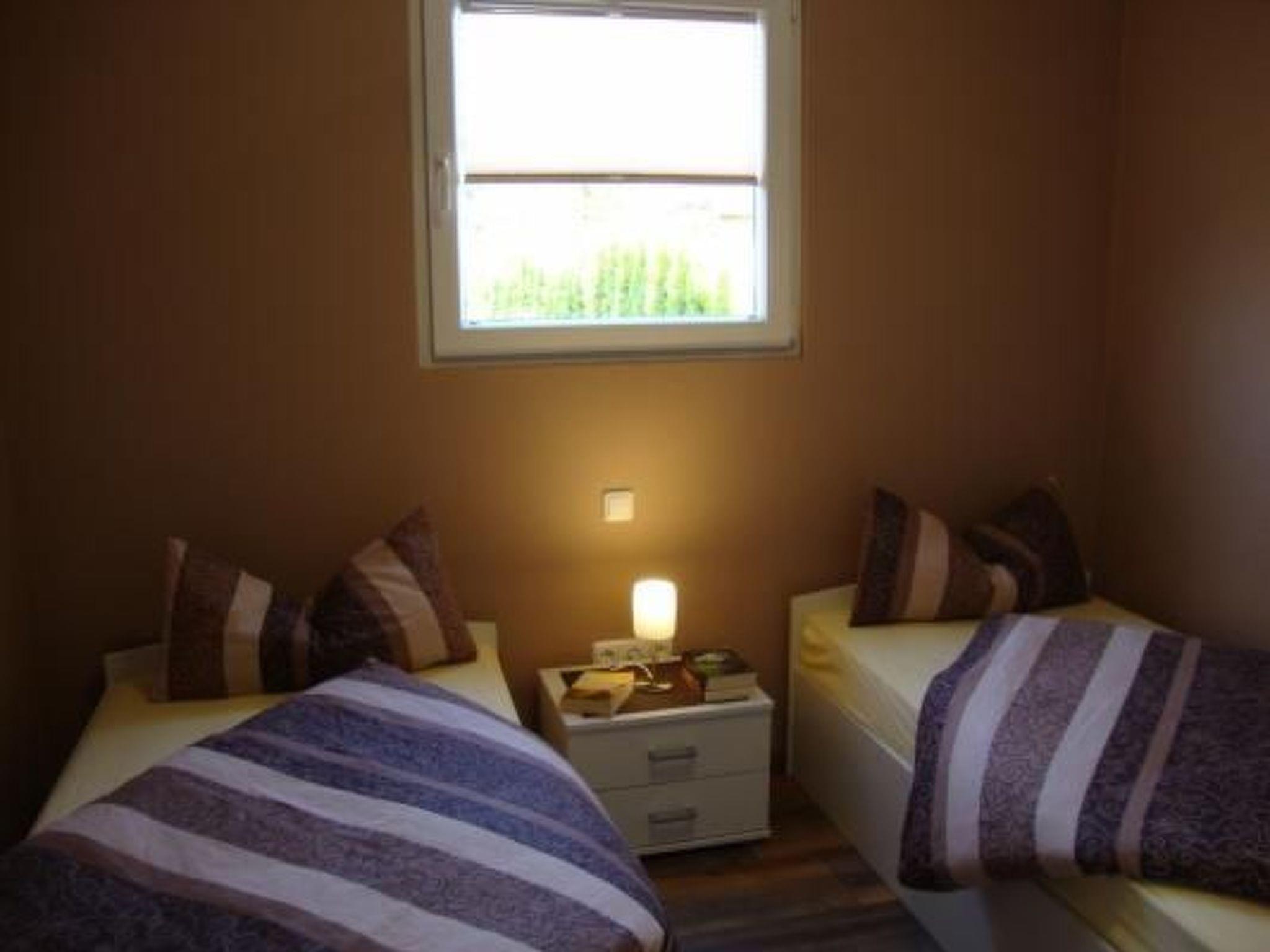 Bedroom 2 - 2 single beds (each 0.90m x 2.00m) separated by a bedside cabinet with reading lamp, wardrobe